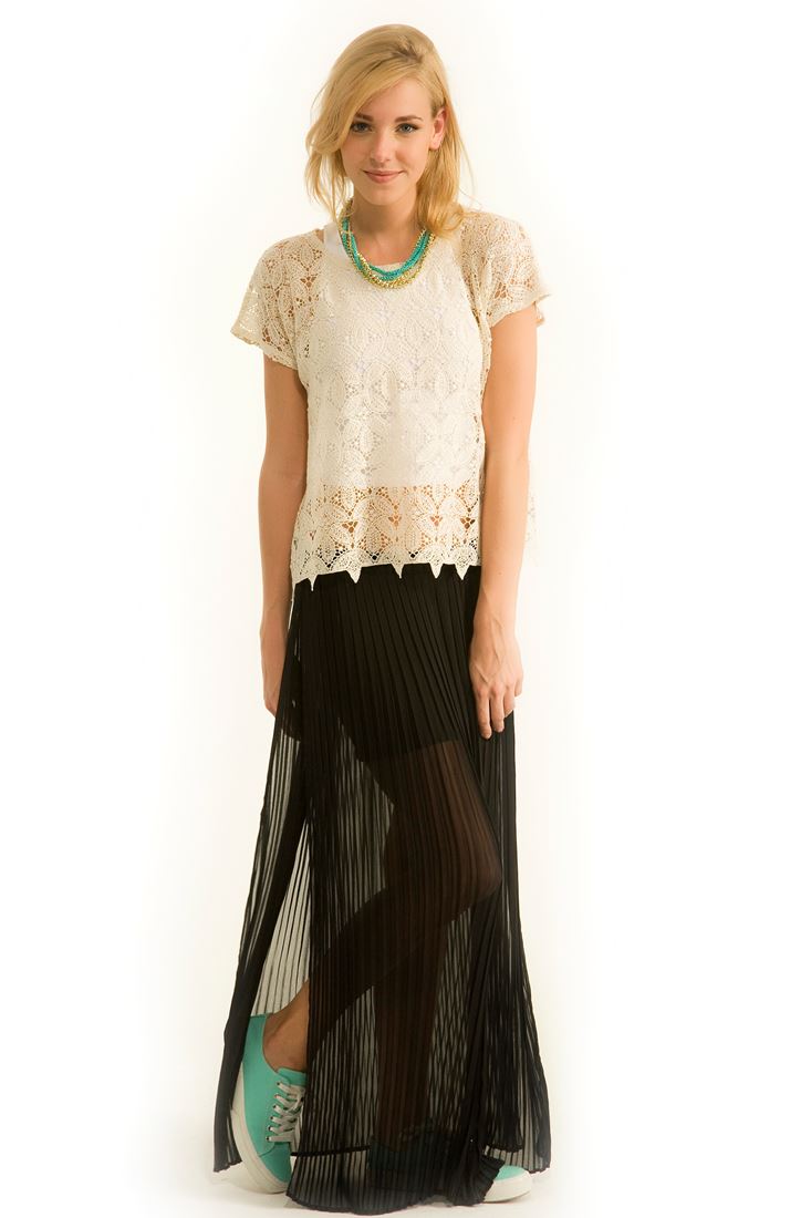 • Bayan Siyah Piliseli Uzun Şifon Etek