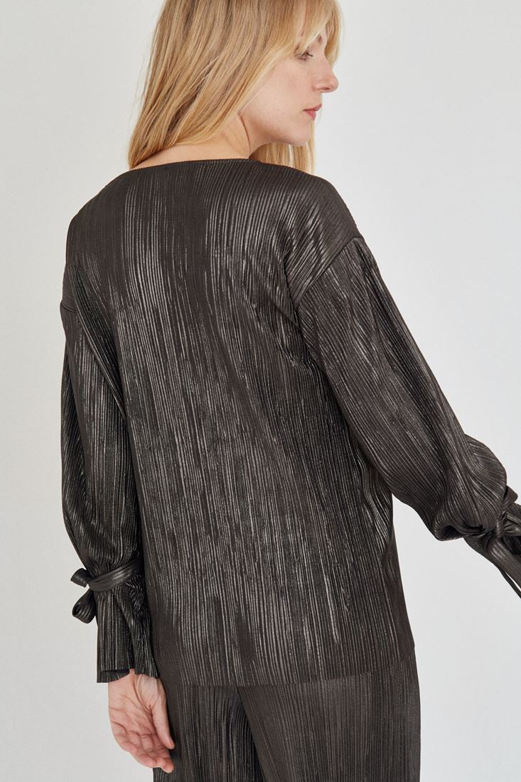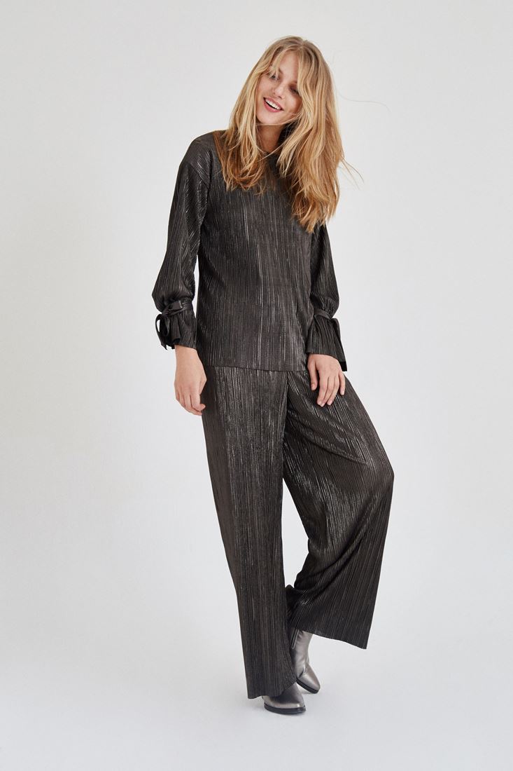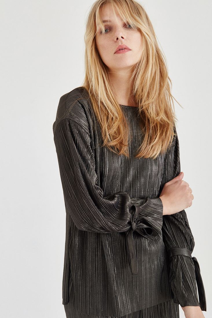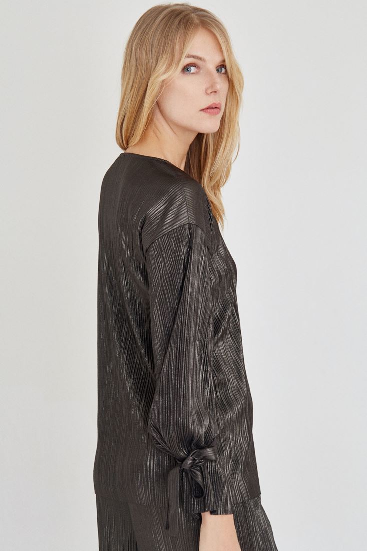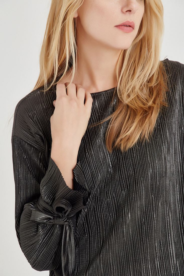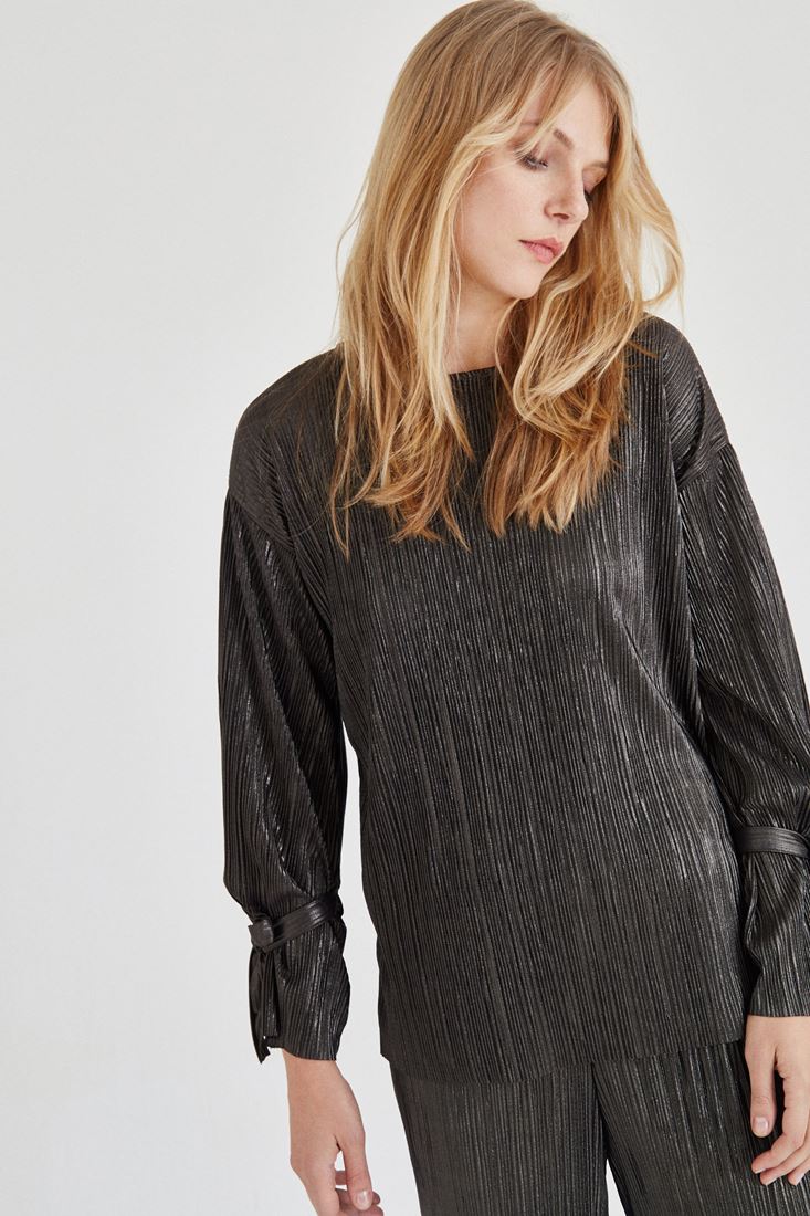 Metalik ürünler bu sezonun gözde parçalari arasinda geliyor. Plise metalik bluz modelleri kol detayi ile kendine hayran birakiyor. Sik kombinlerin vazgeçilmezi olan bluz modelleri hem jean pantolonlarla çok yakisiyor.
