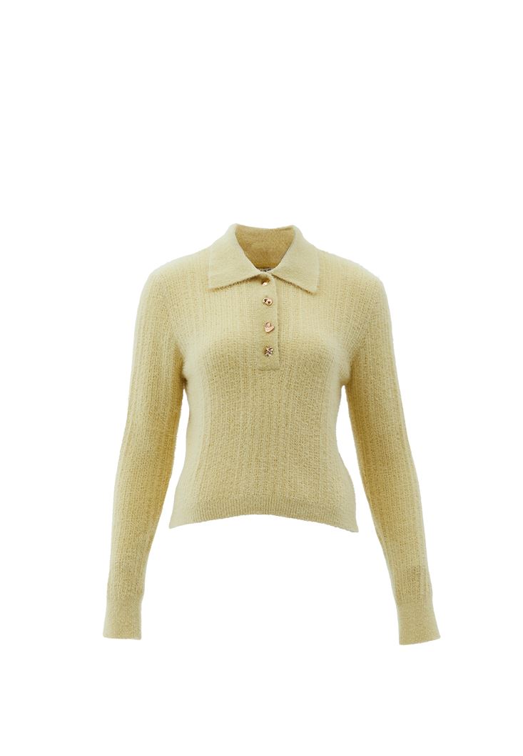 • Bayan Sarı Polo Yaka Ajurlu Kazak