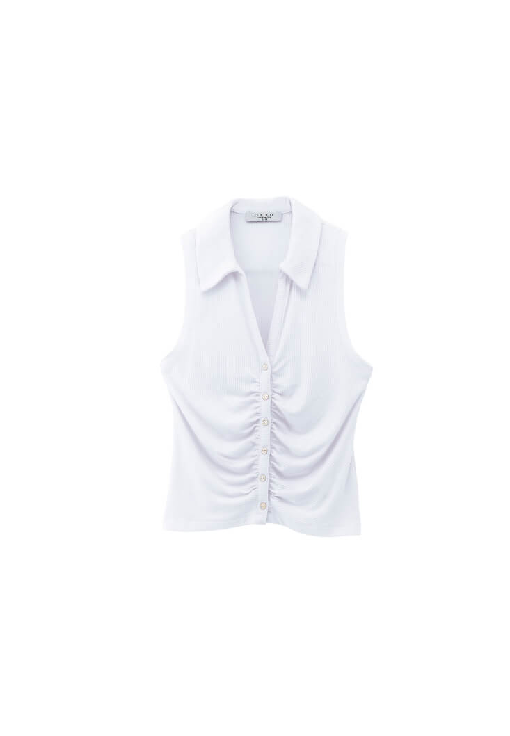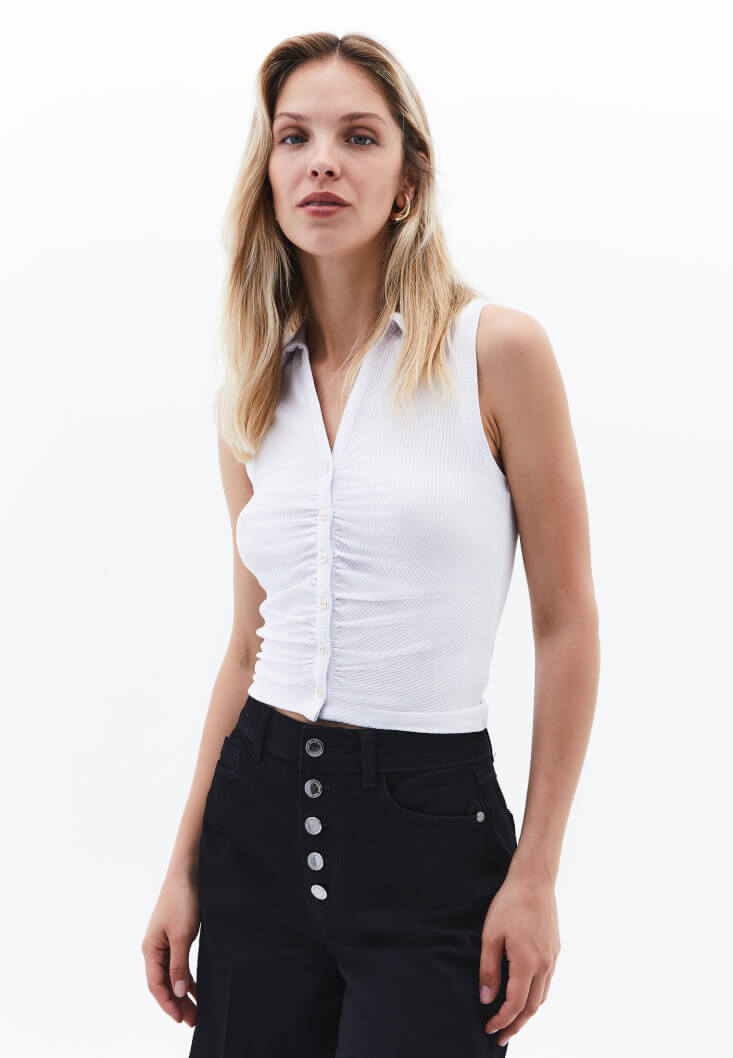 • Bayan Beyaz Polo Yaka Büzgülü Atlet