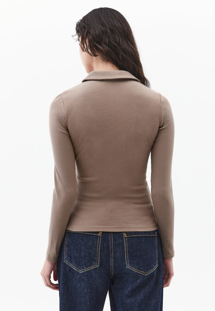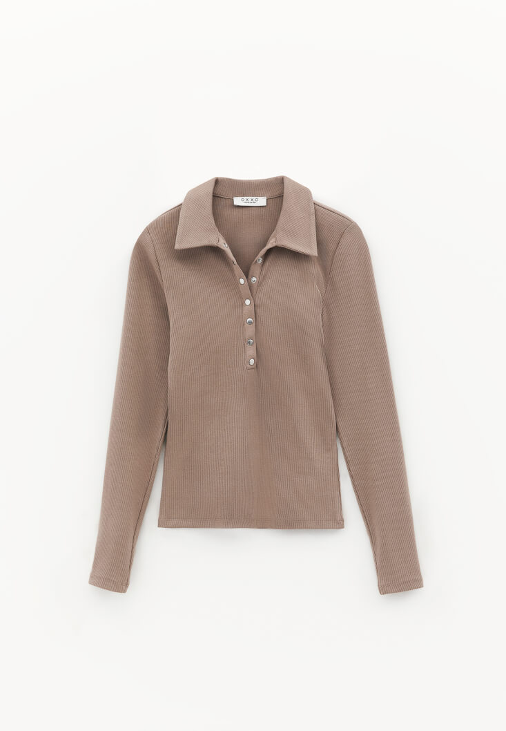Fit: Bodycon / Yaka: Polo Collar / Kol: Long Sleeve
