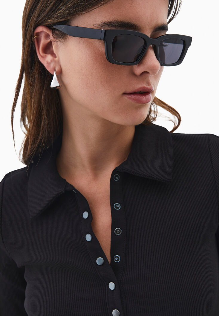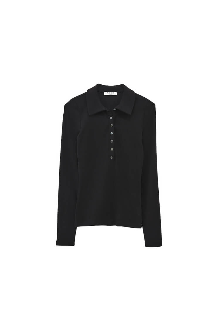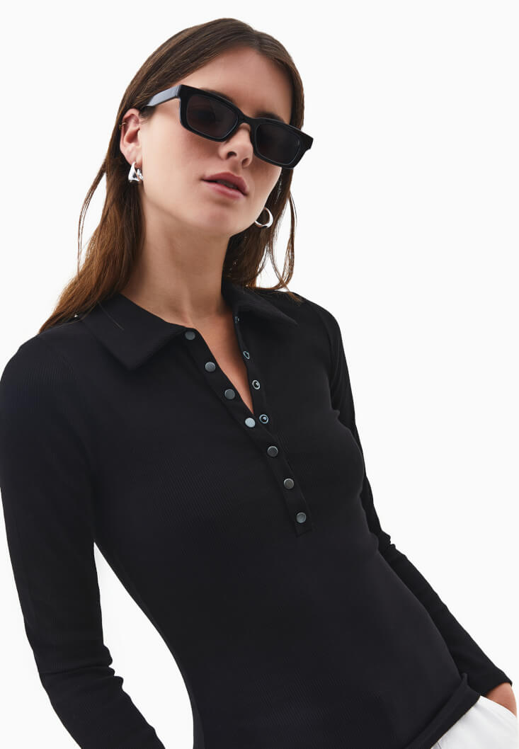 • Bayan Siyah Polo Yaka Çıtçıtlı Tişört