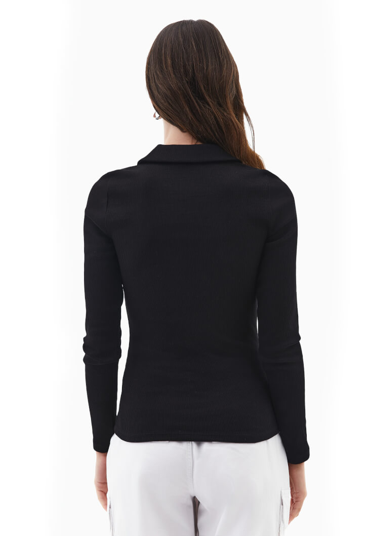 Fit: Bodycon / Yaka: Polo Collar / Kol: Long Sleeve