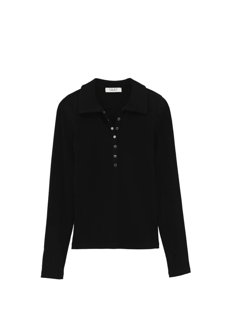 • Bayan Siyah Polo Yaka Çıtçıtlı Tişört