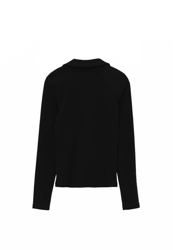 Pamuk karışımlı içerik, jakarlı doku, bedeni saran esnek fit, polo yaka, uzun kollu, çıtçıt kapamalı yaka.