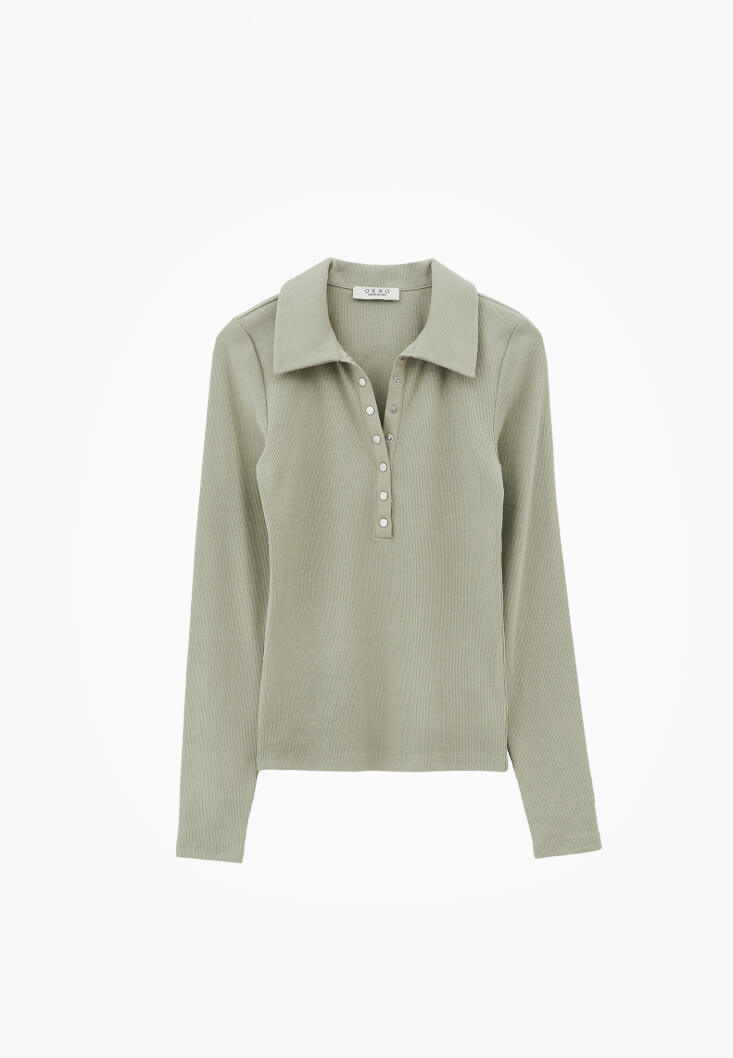 • Bayan Yeşil Polo Yaka Çıtçıtlı Tişört