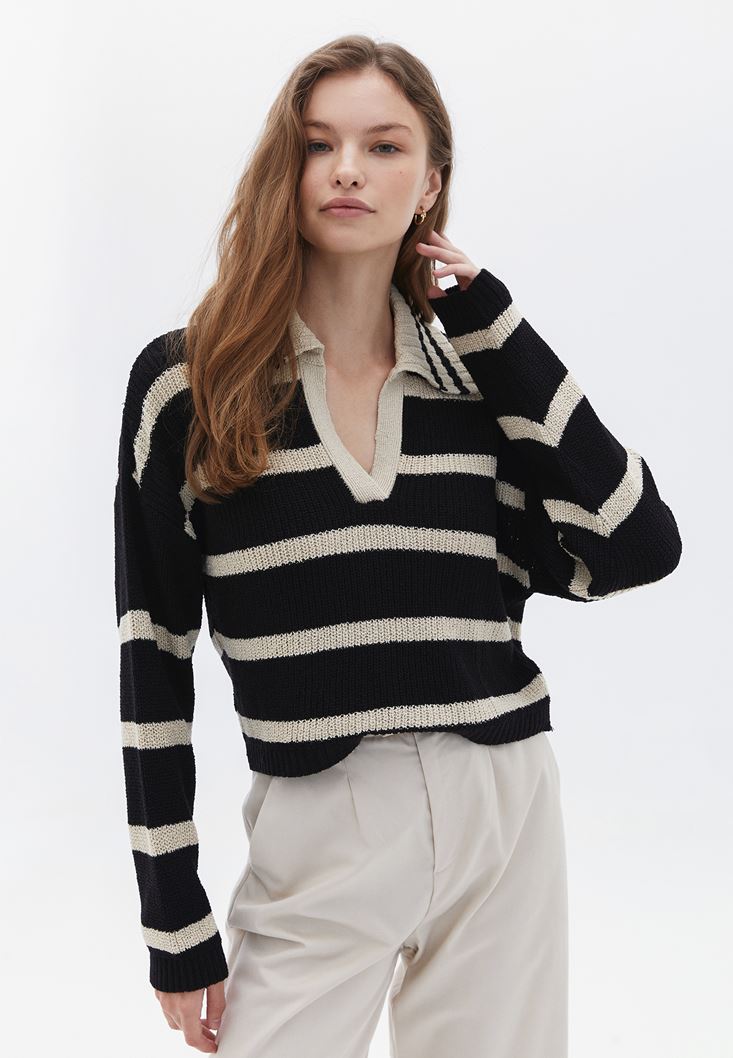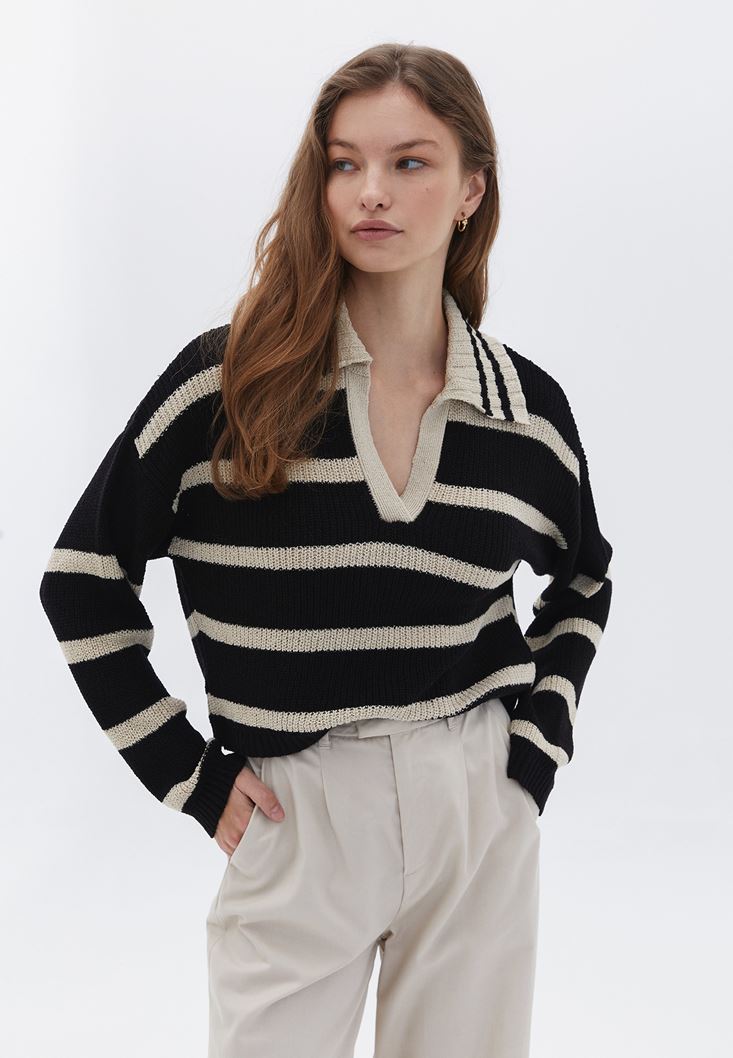 Oxxo Polo Yaka Çizgili Kazak 2172271328
