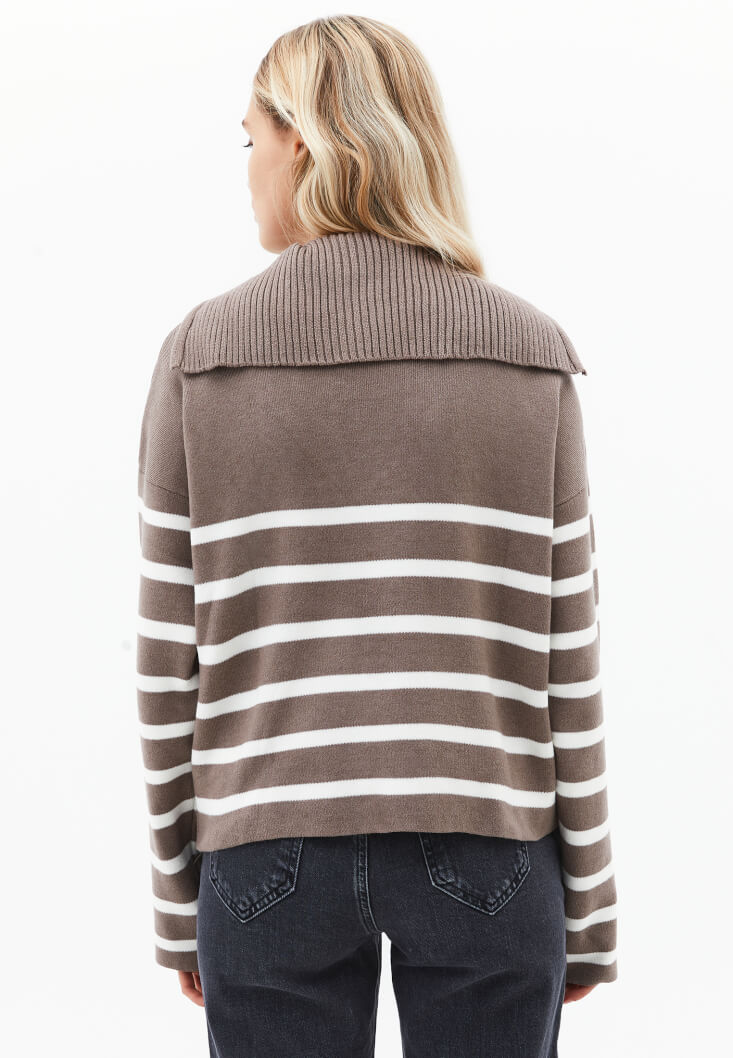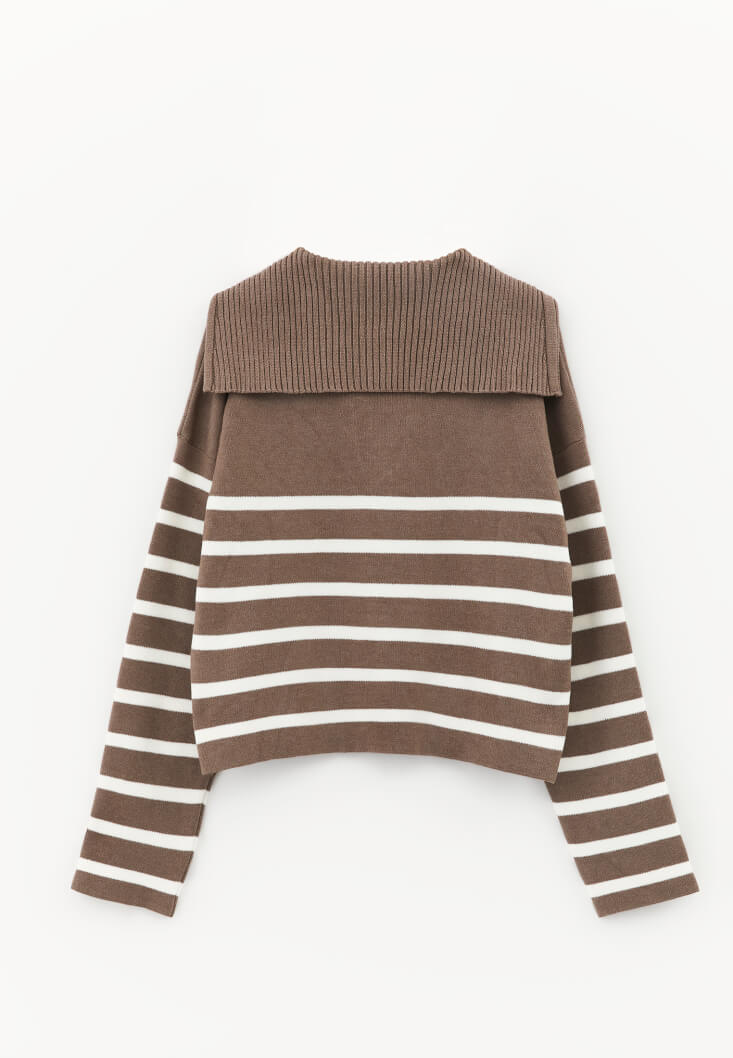 • Bayan Çok Renkli Polo Yaka Çizgili Kazak