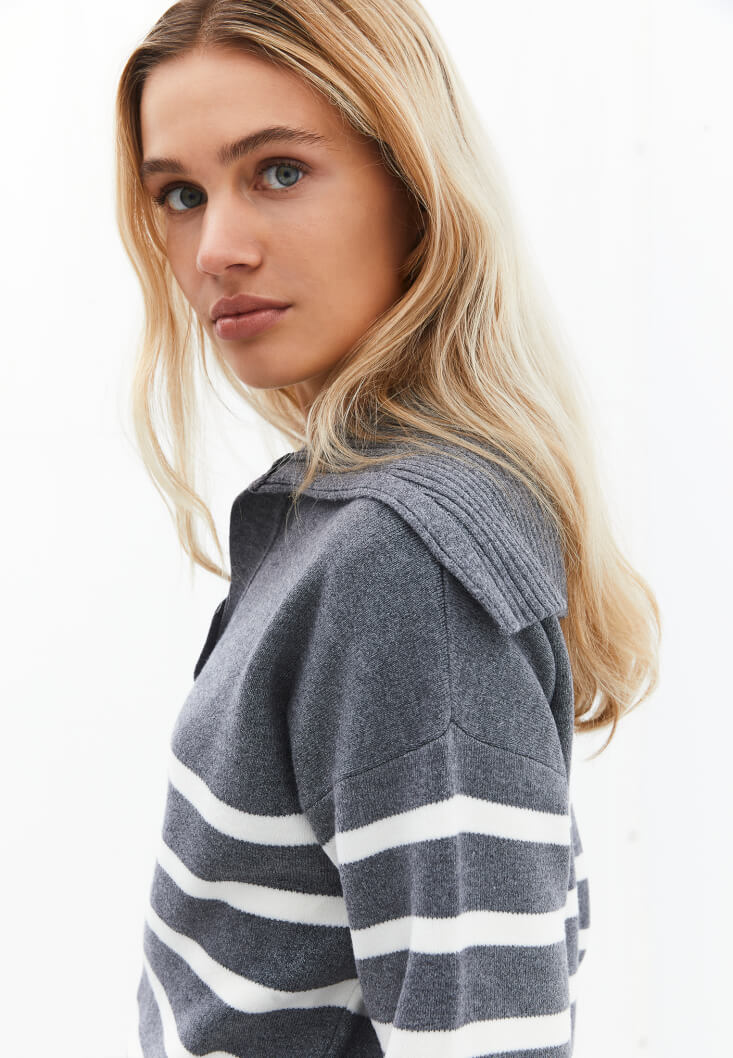 Oxxo Polo Yaka Çizgili Kazak 2202435321
