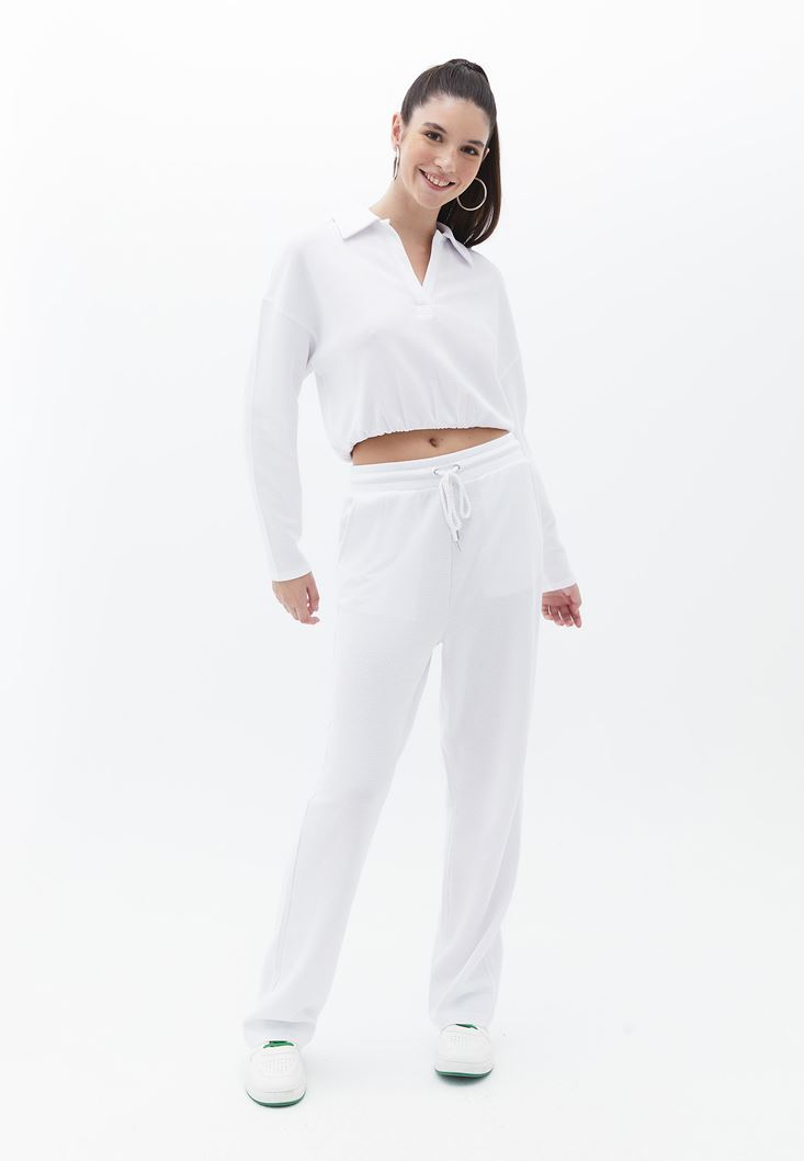 Beyaz Polo Yaka Crop Tişört