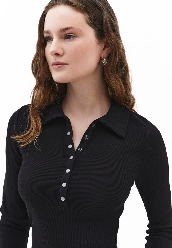 Fit: Bodycon / Yaka: Polo Collar / Kol: Long Sleeve