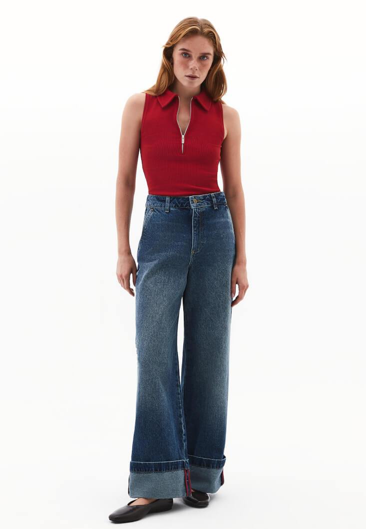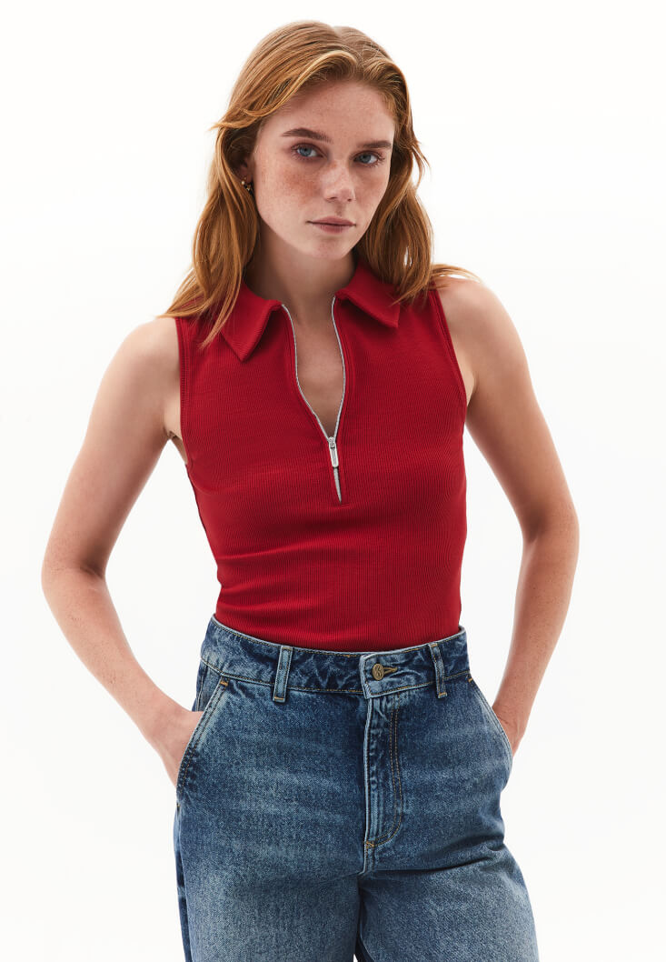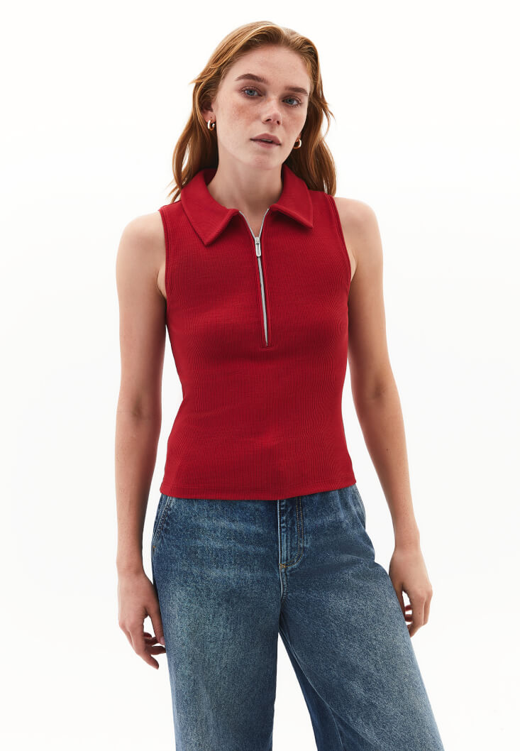 • Bayan Kırmızı Polo Yaka Fermuarlı Atlet