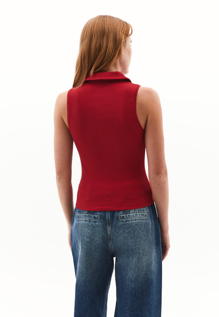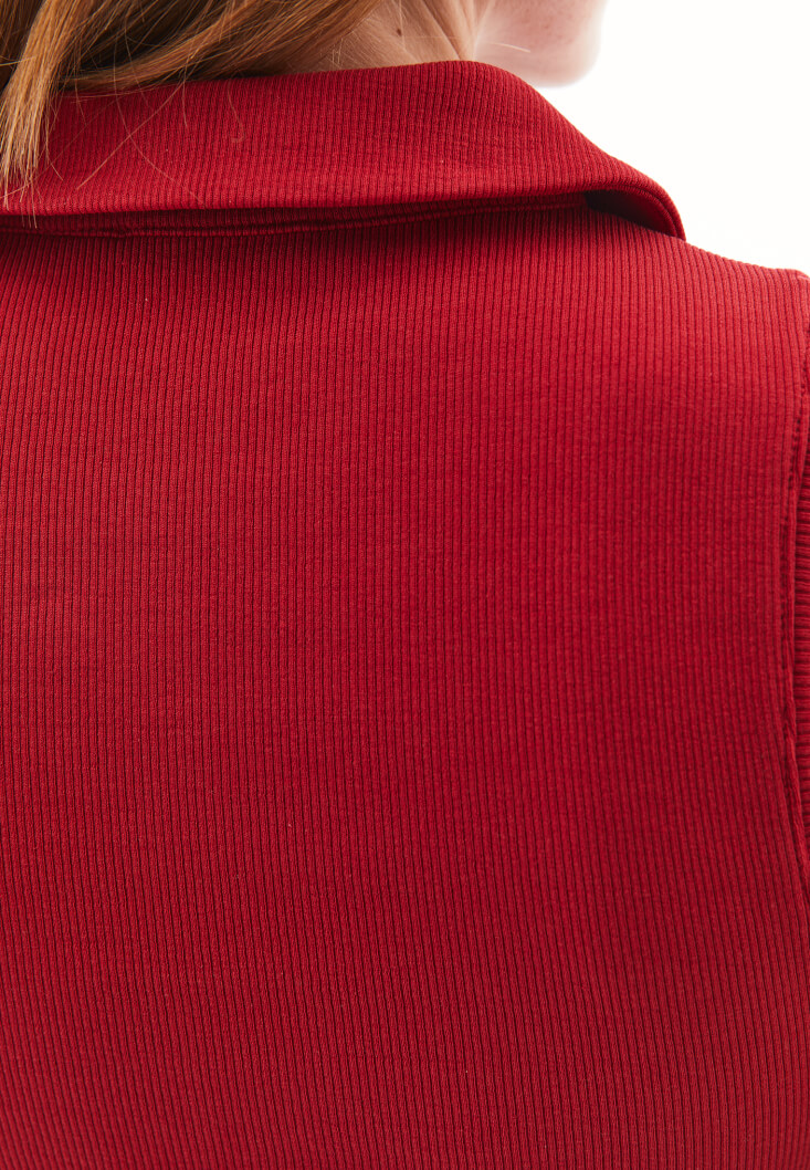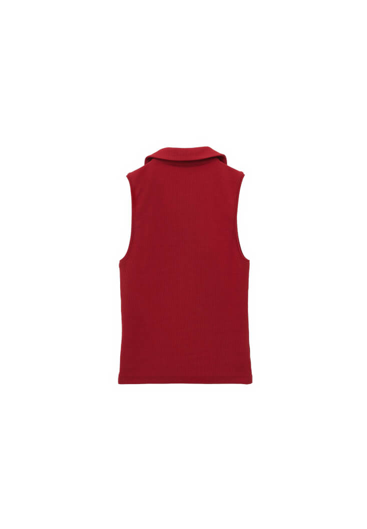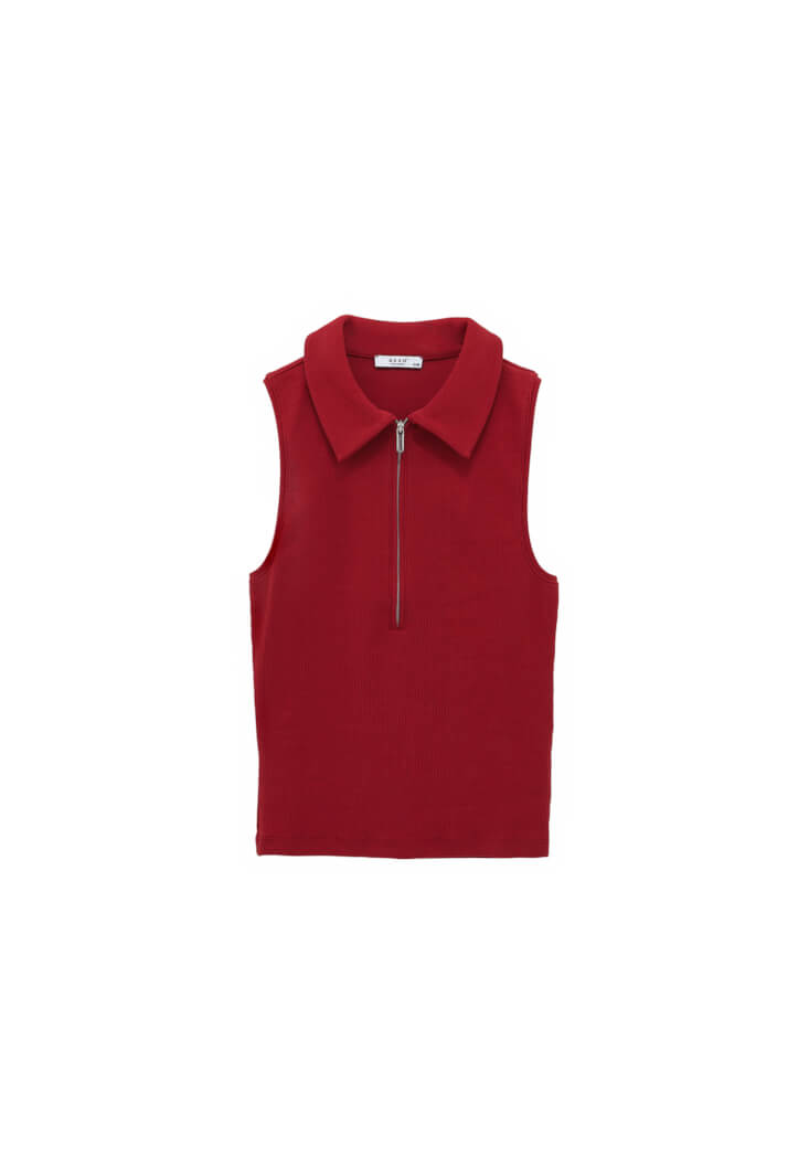 Kırmızı Polo Yaka Fermuarlı Atlet