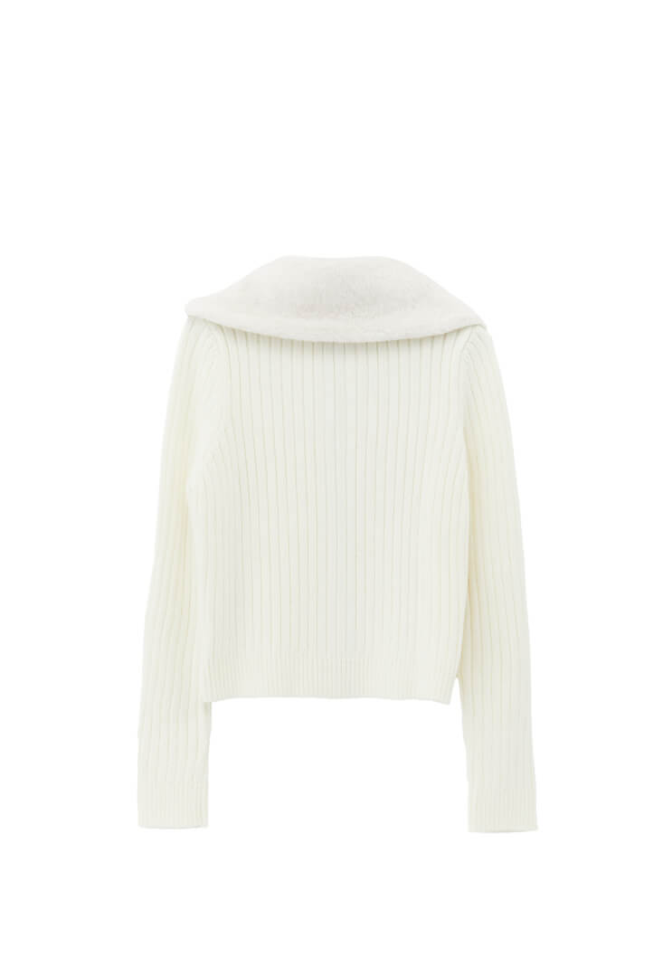 Jakarlı örgü triko, polo yaka, uzun kollu, fermuar kapamalı, bedene yakın rahat fit, yakası kürk detaylı.