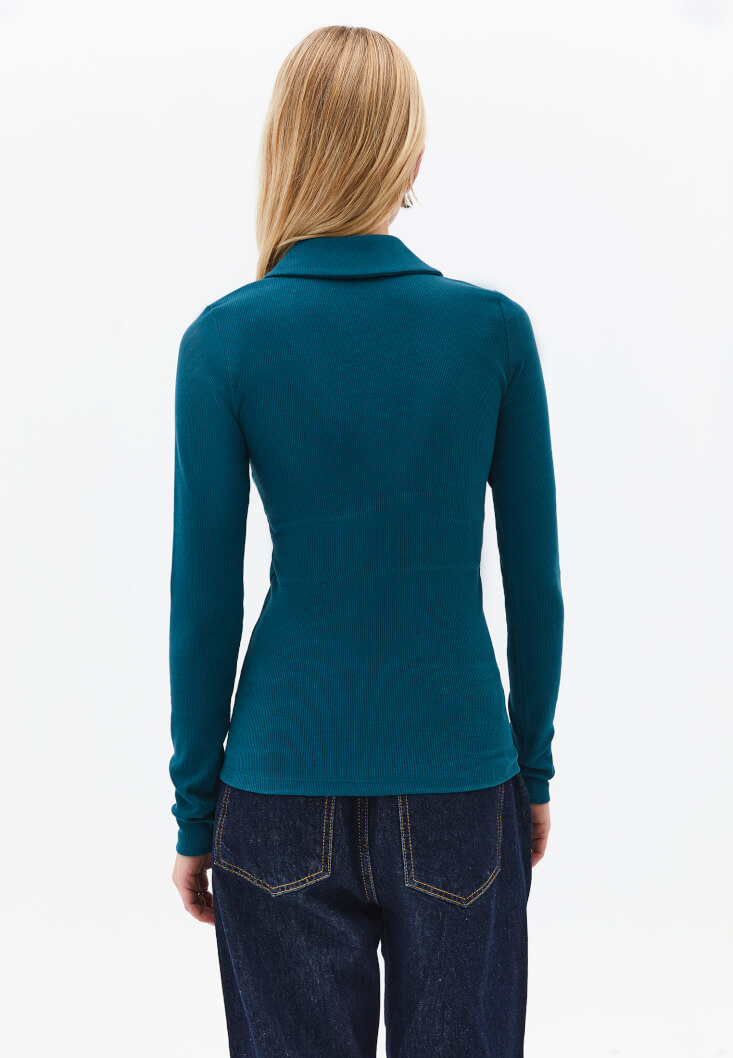 Fit: Bodycon / Yaka: Polo Collar / Kol: Long Sleeve