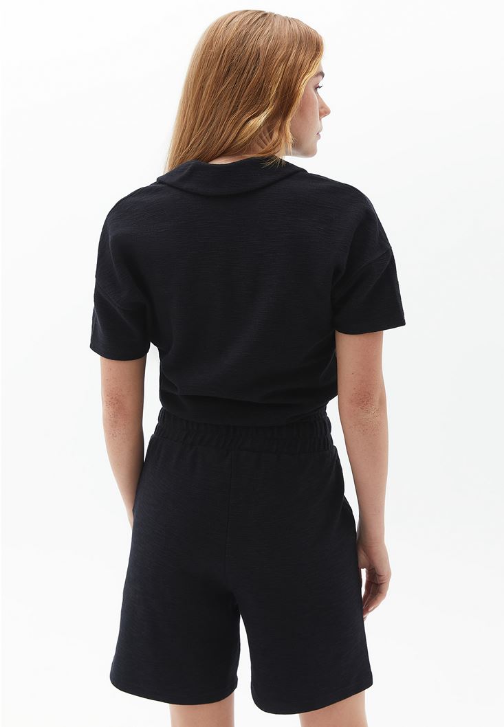 Siyah Polo Yaka Sweatshirt