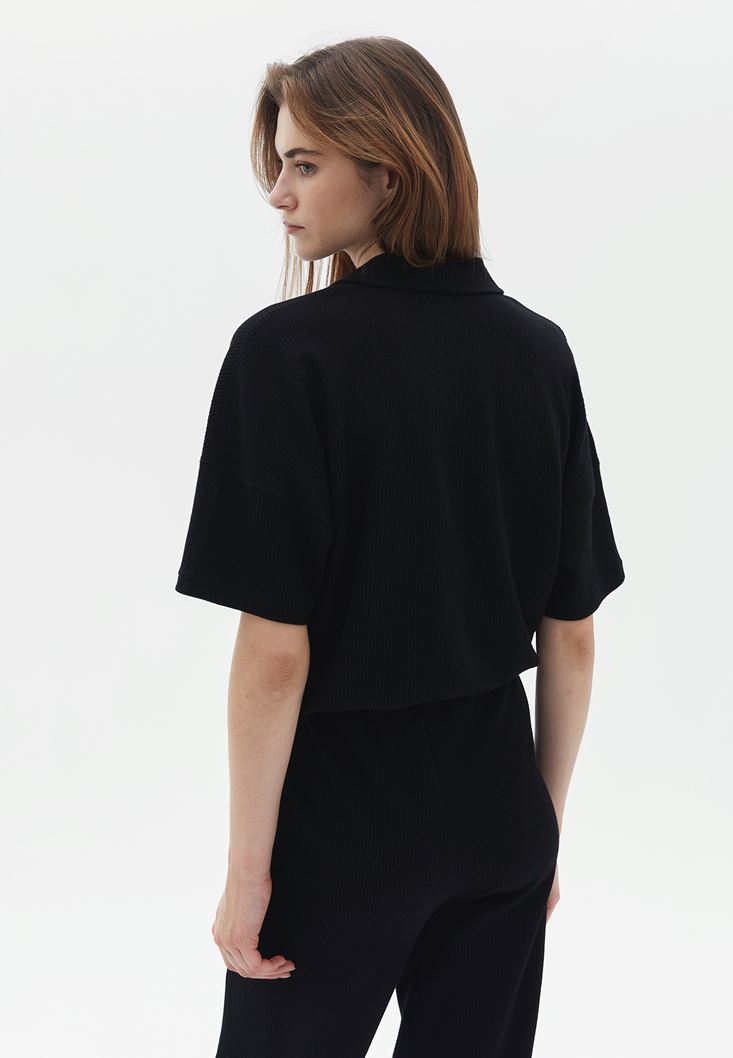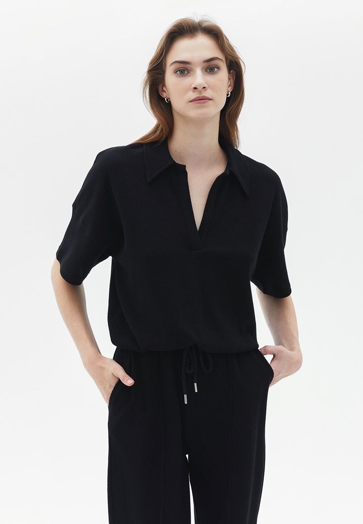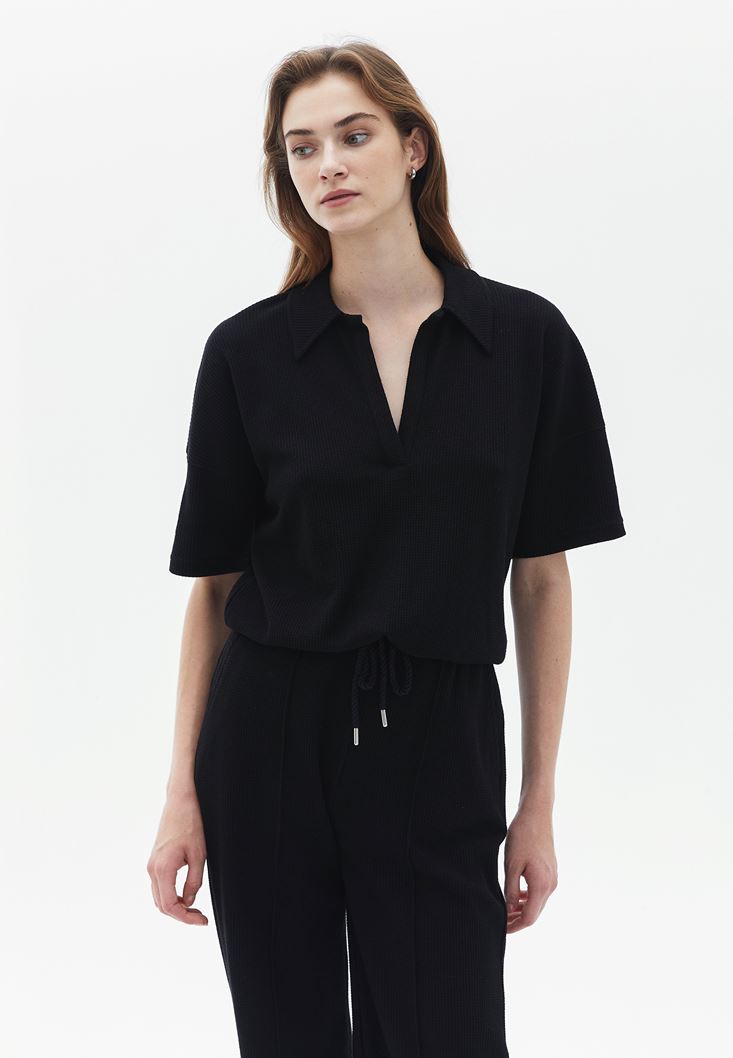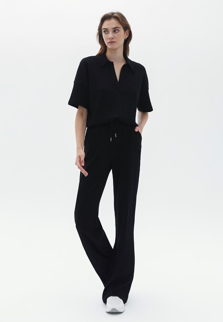 Polo Yaka Tişört ve Yüksek Bel Pantolon Kombini