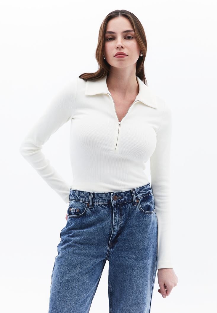 • Bayan Krem Polo Yaka Tişört
