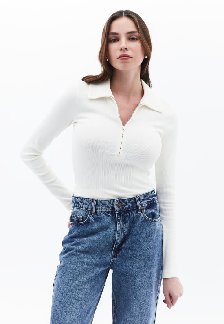 • Bayan Krem Polo Yaka Tişört