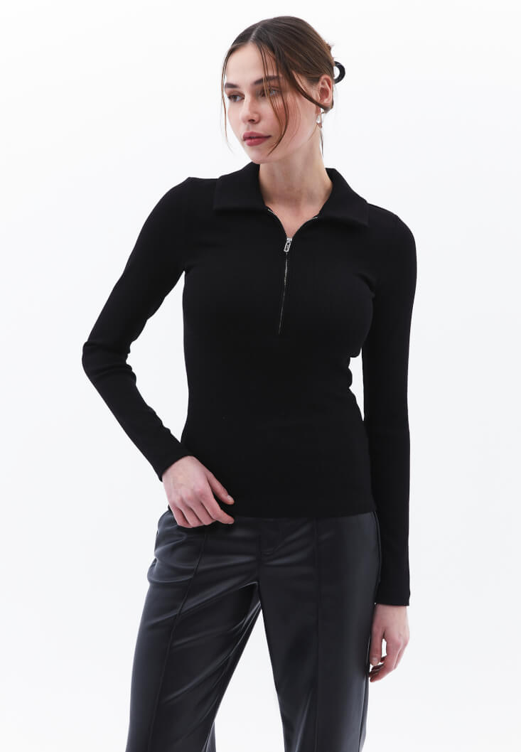 • Bayan Siyah Polo Yaka Tişört