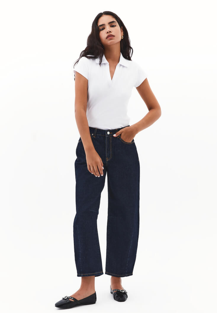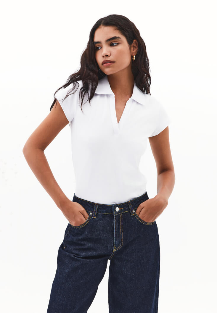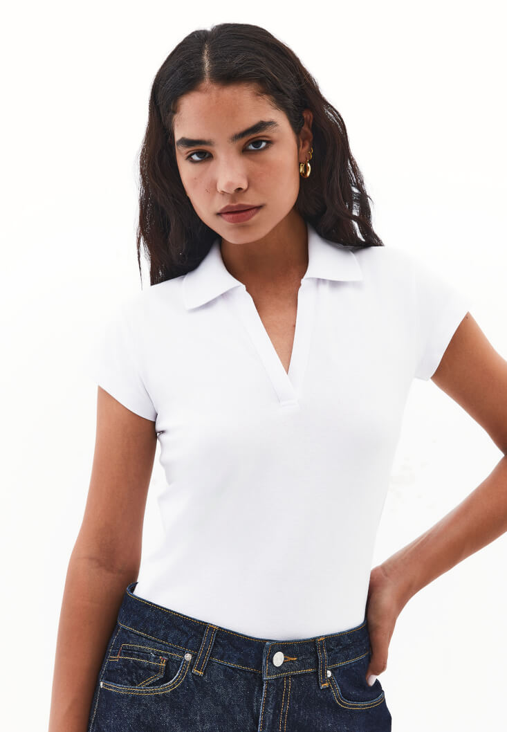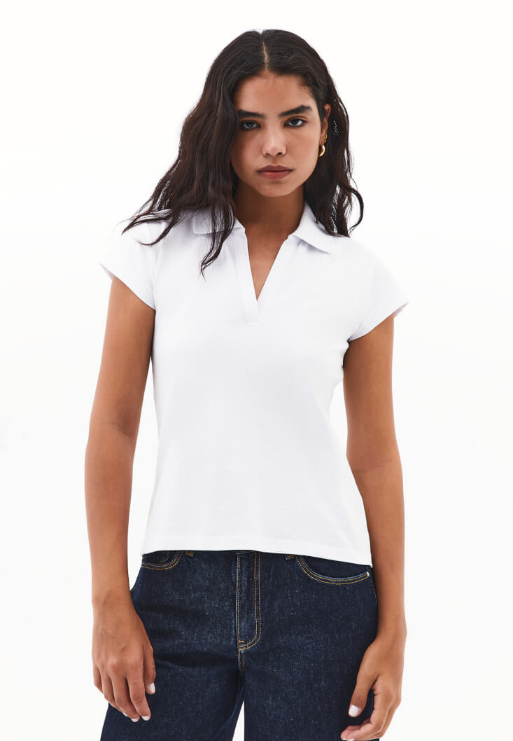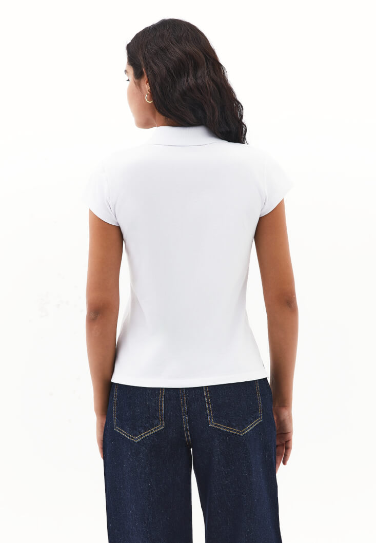 • Bayan Beyaz Polo Yaka Tişört