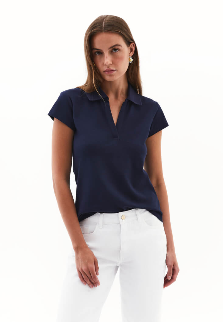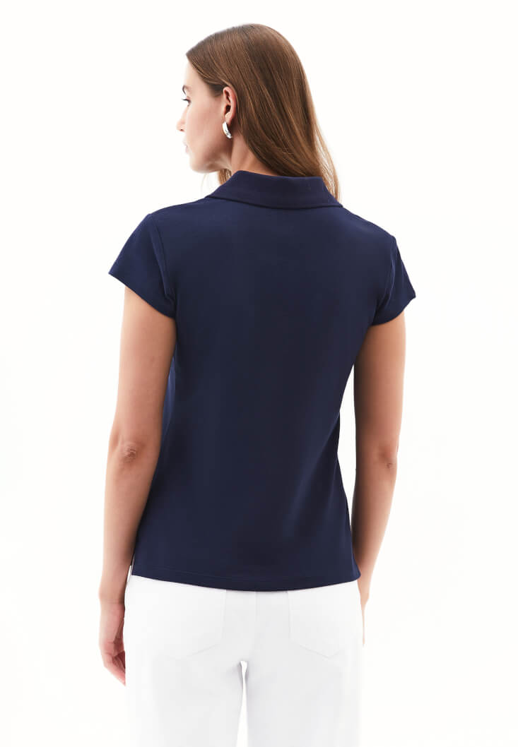 • Bayan Lacivert Polo Yaka Tişört