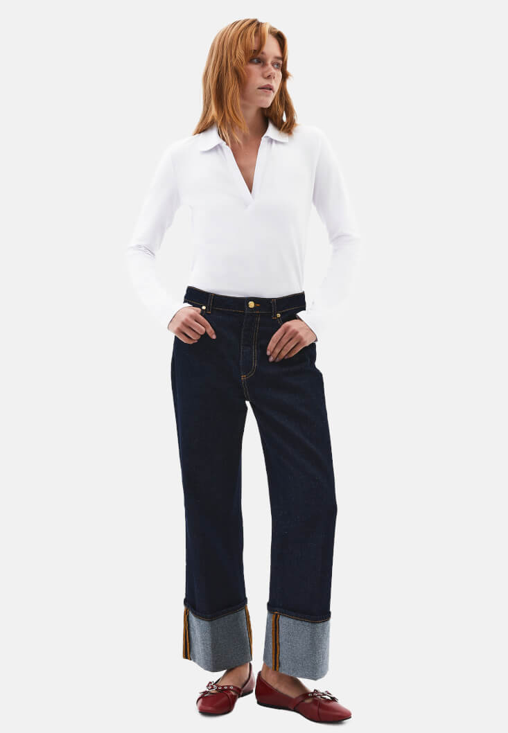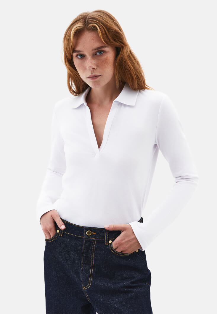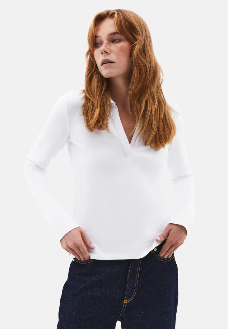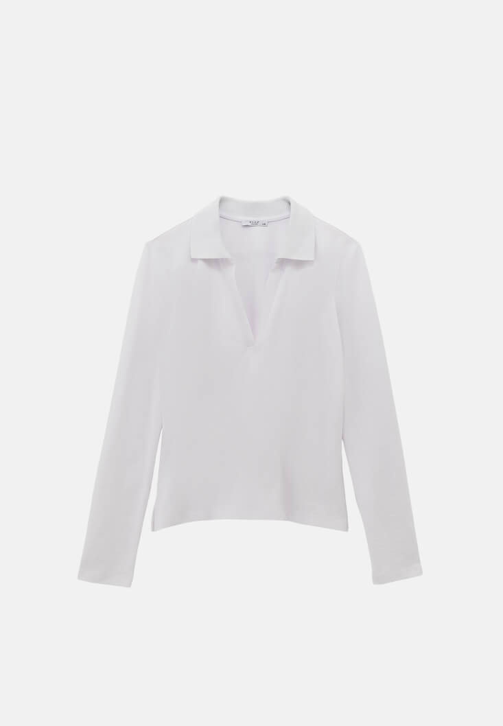 • Bayan Beyaz Polo Yaka Tişört