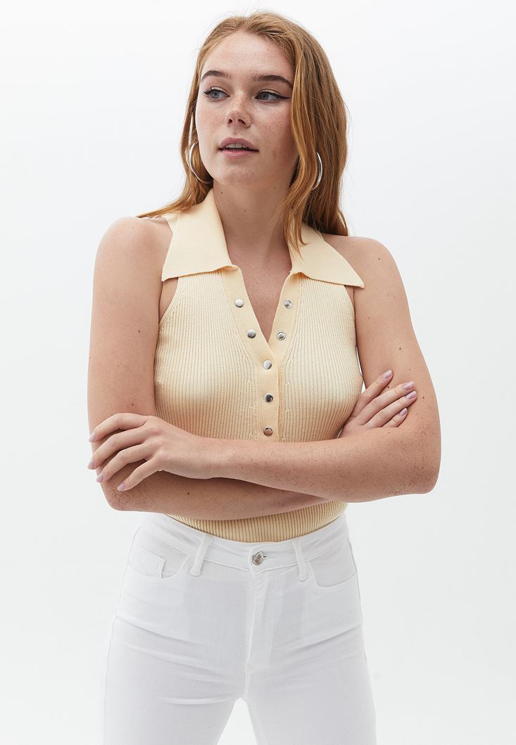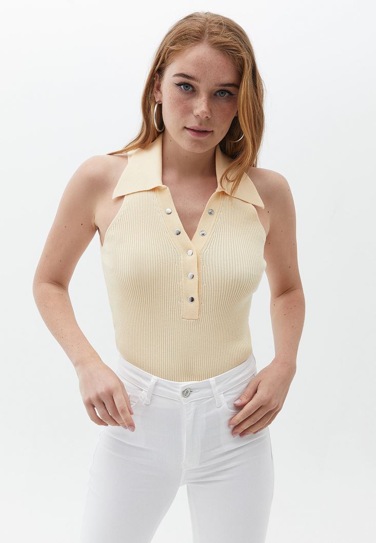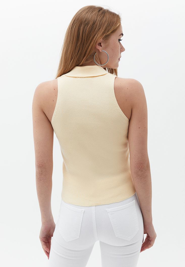 Fit: Bodycon / Yaka: Polo Collar / Kol: Sleeveless
