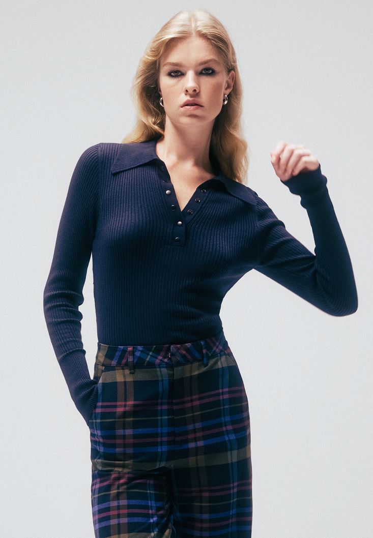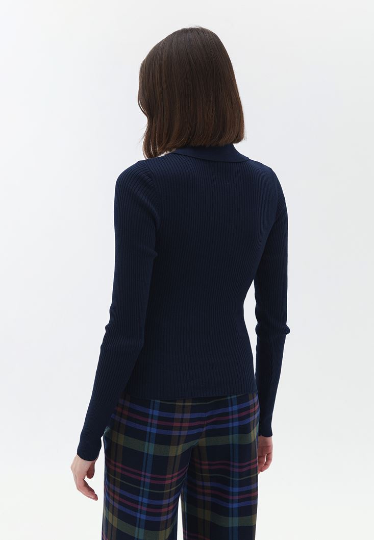 • Bayan Lacivert Polo Yaka Triko Kazak
