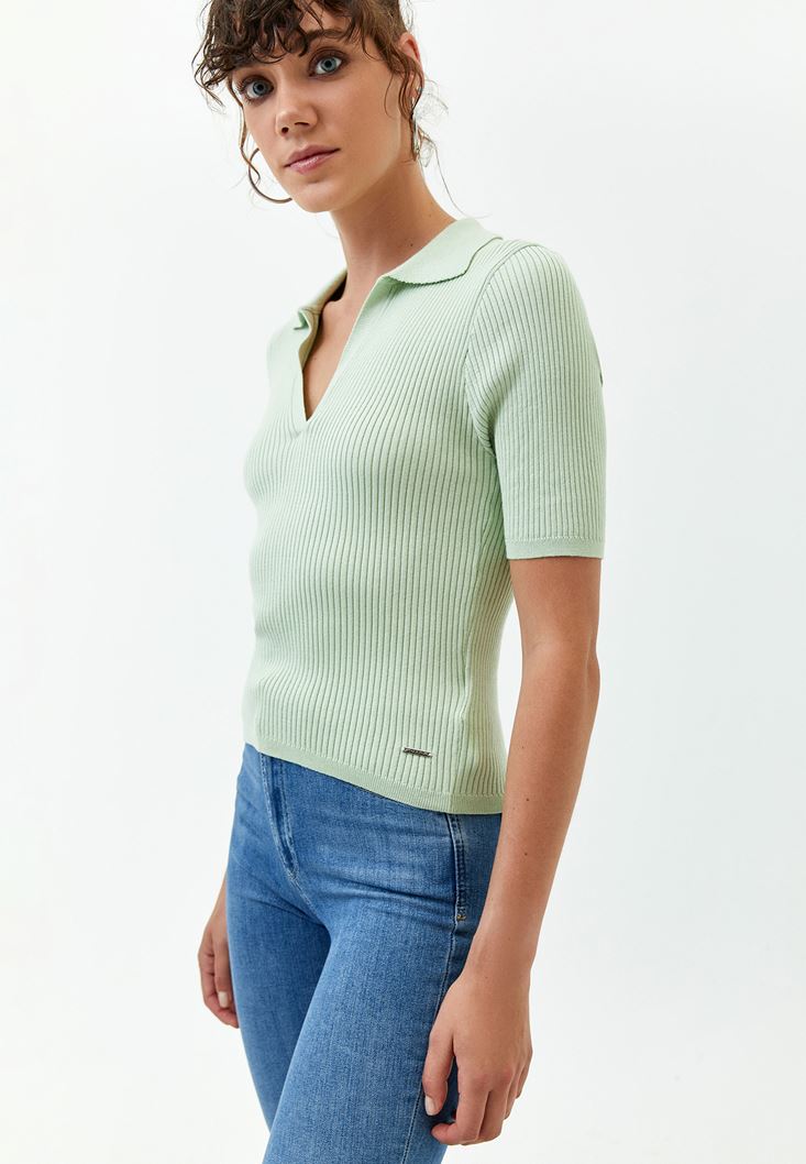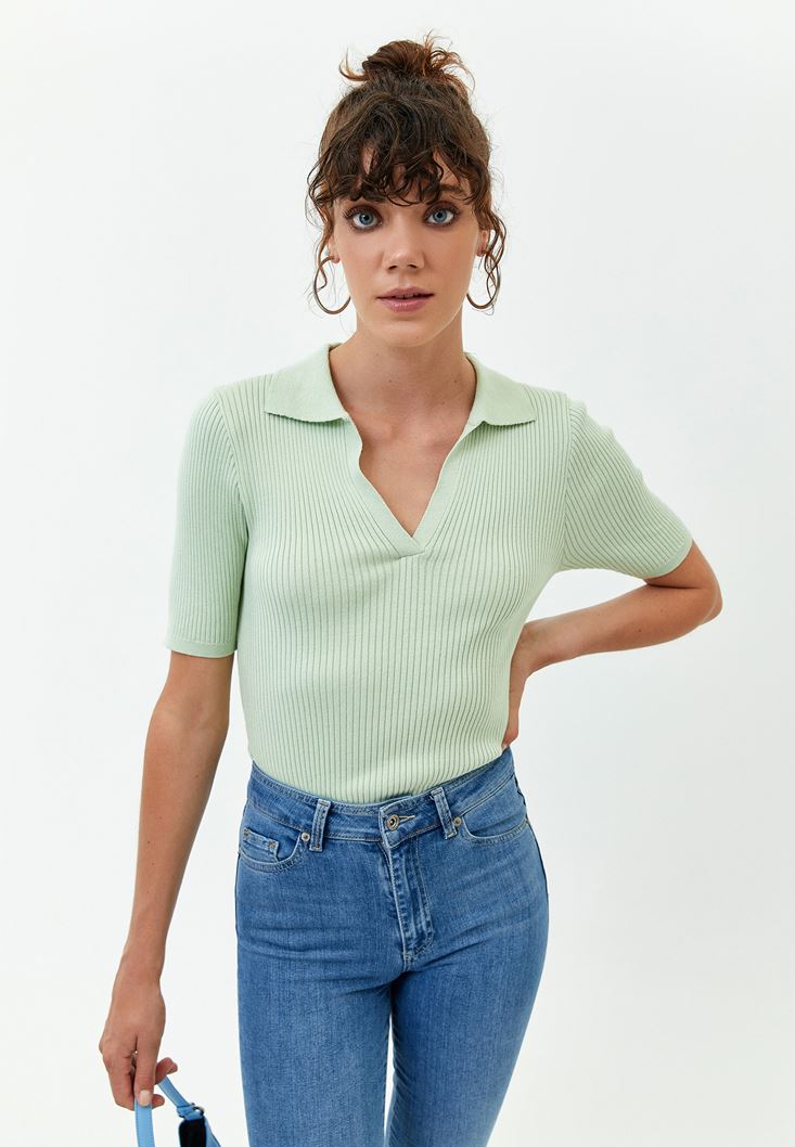 • Bayan Yeşil Polo Yaka Triko Top ( MODAL )