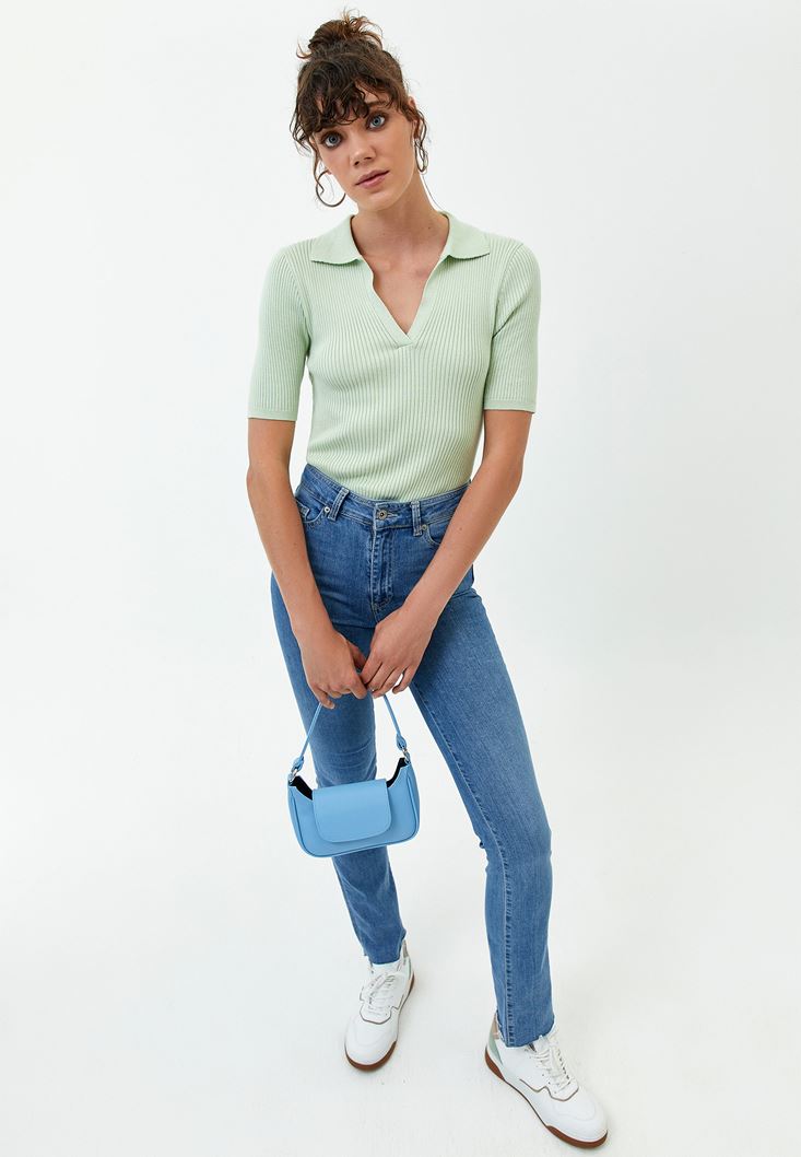 Fit: Bodycon / Yaka: Shirt-Neck / Kol Boyu Grubu: Half Sleeve