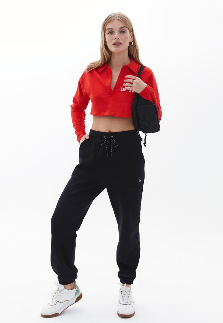 • Bayan Kırmızı Polo Yaka Uzun Kollu Sweatshirt