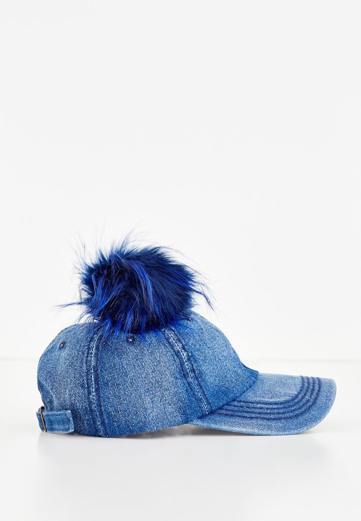 Mavi Ponpon Detaylı Denim Şapka
