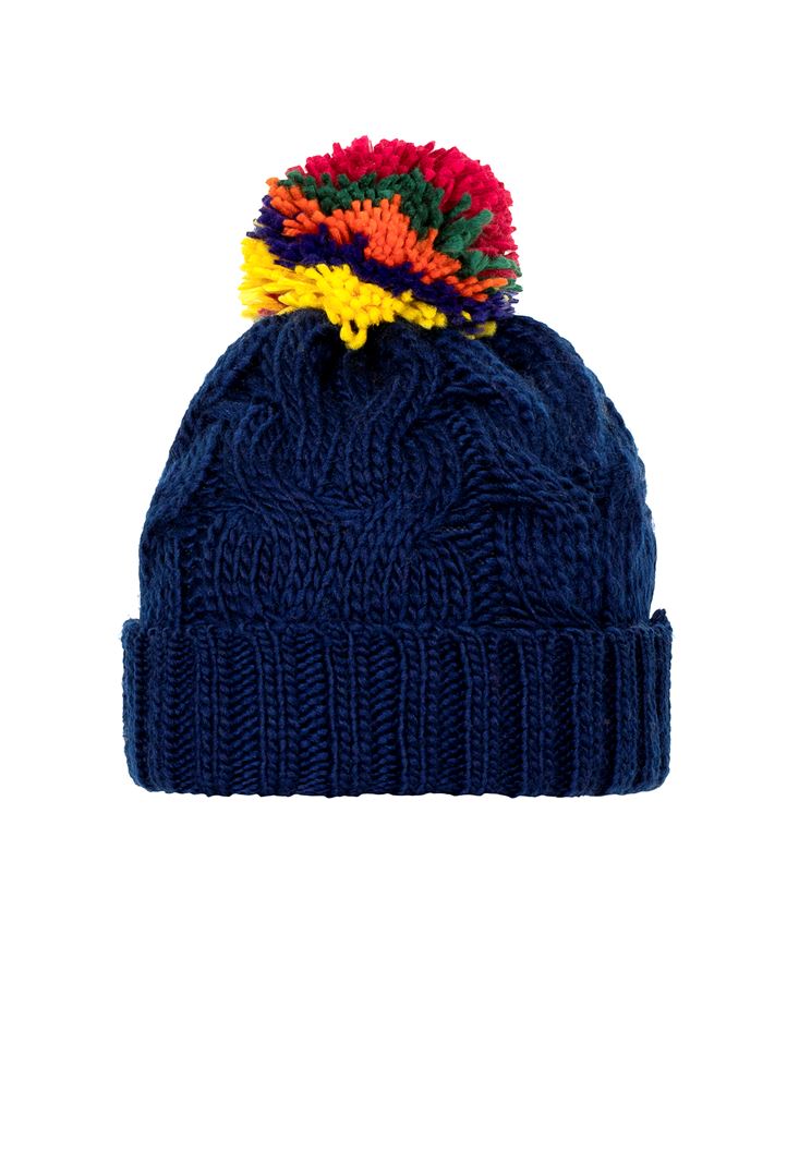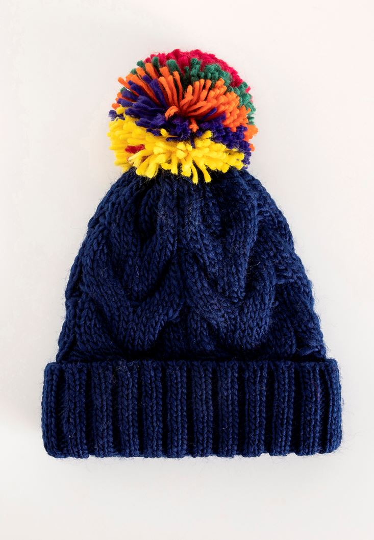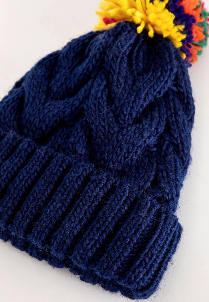 • Bayan Mavi Ponpon Detaylı Dokulu Bere
