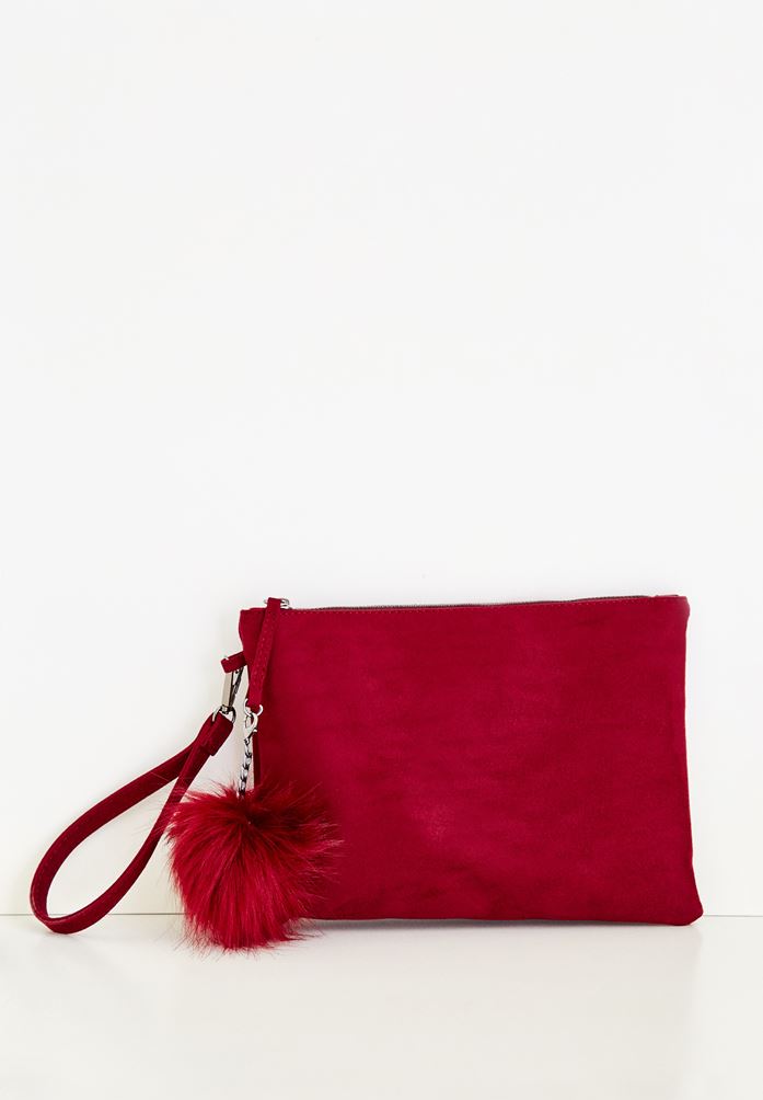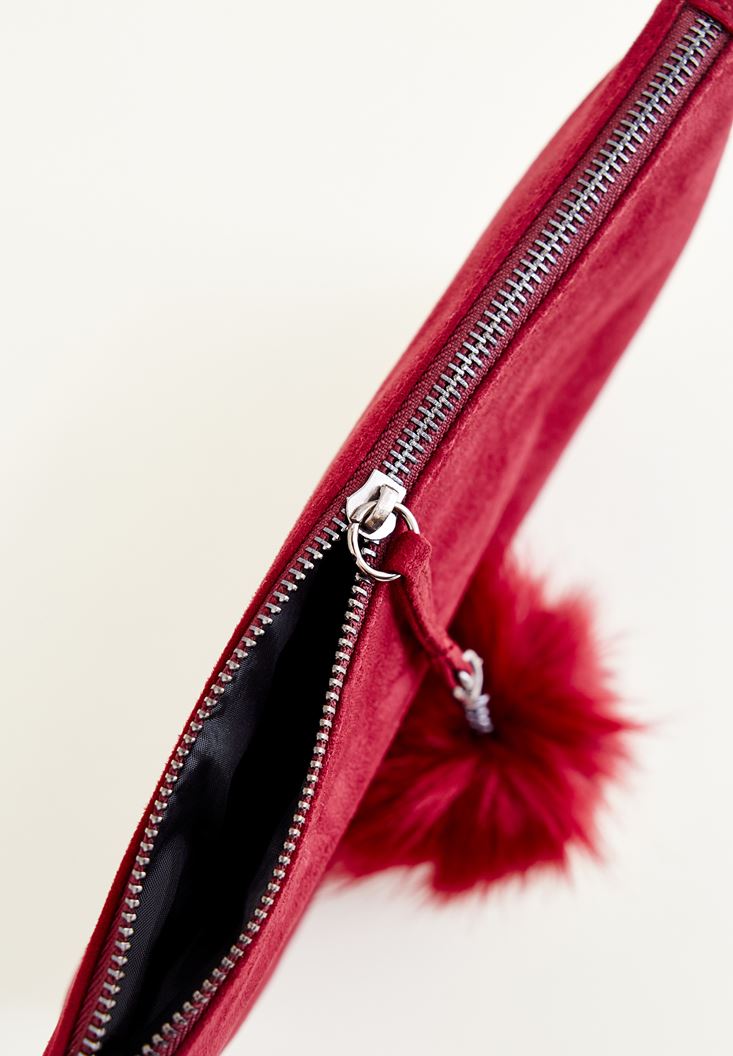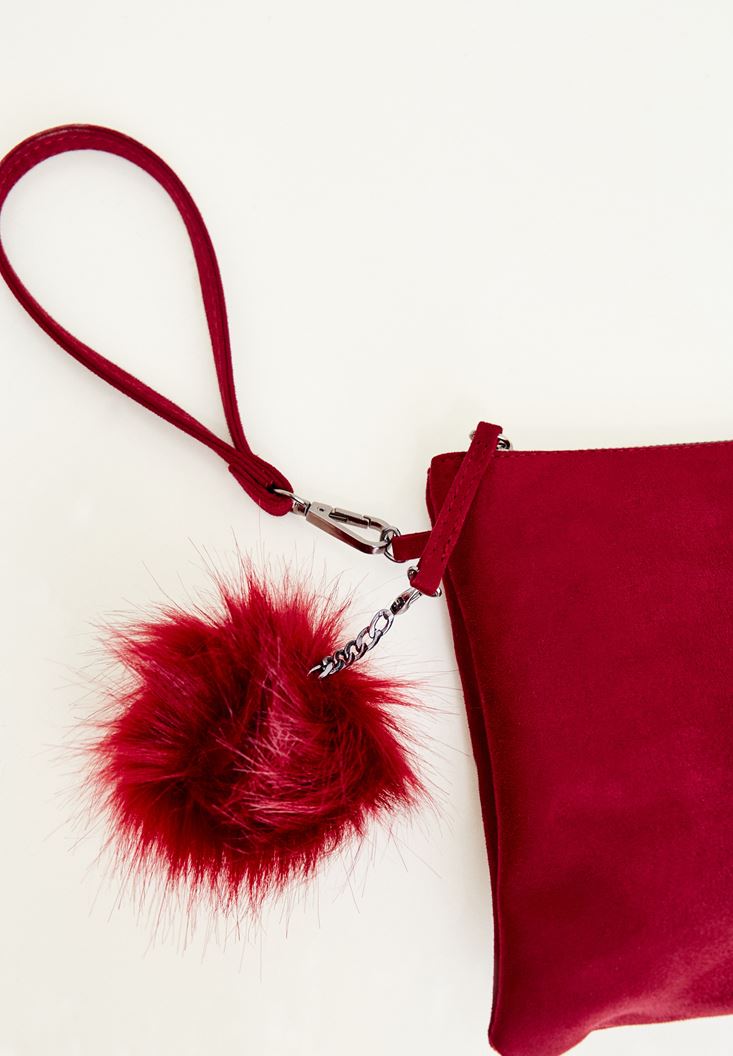 Bordo Ponpon Detaylı Fermuarlı Portföy Çanta