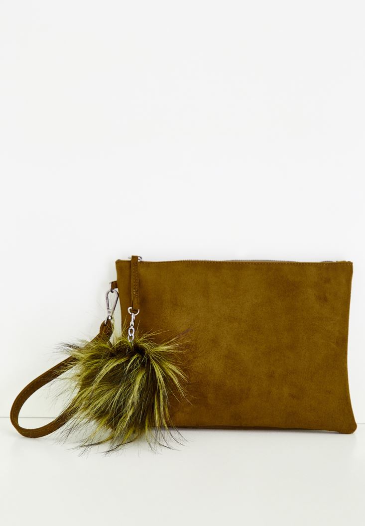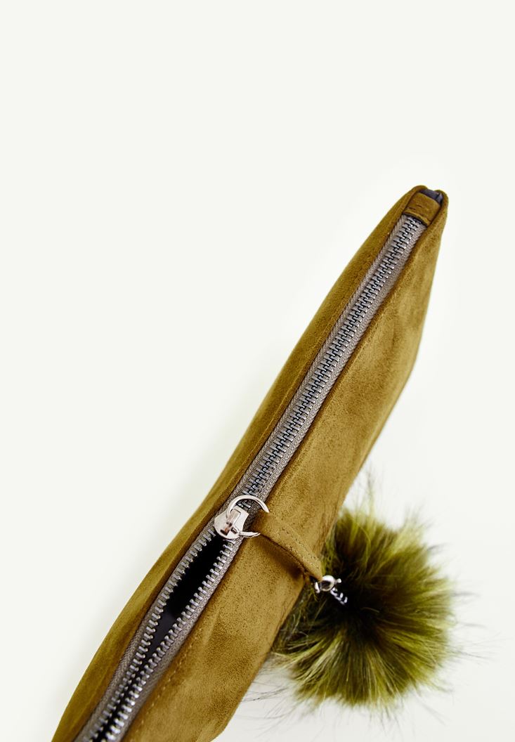 • Bayan Yeşil Ponpon Detaylı Fermuarlı Portföy Çanta