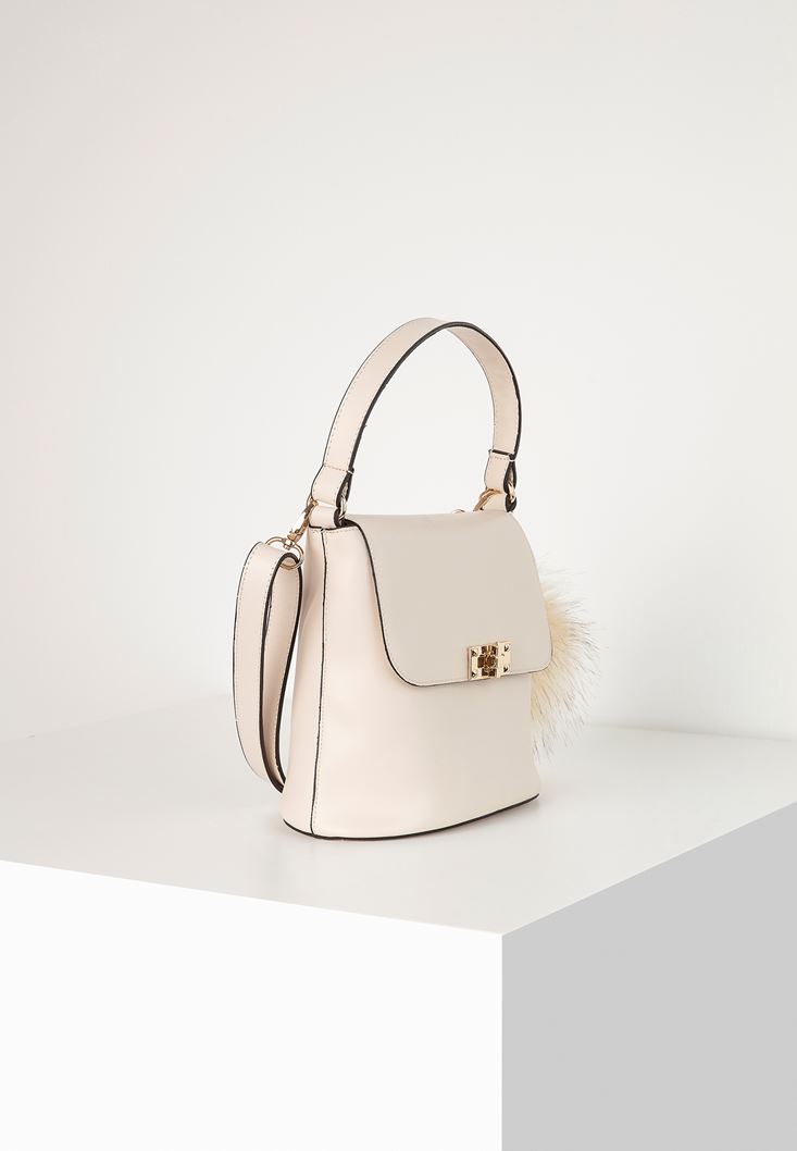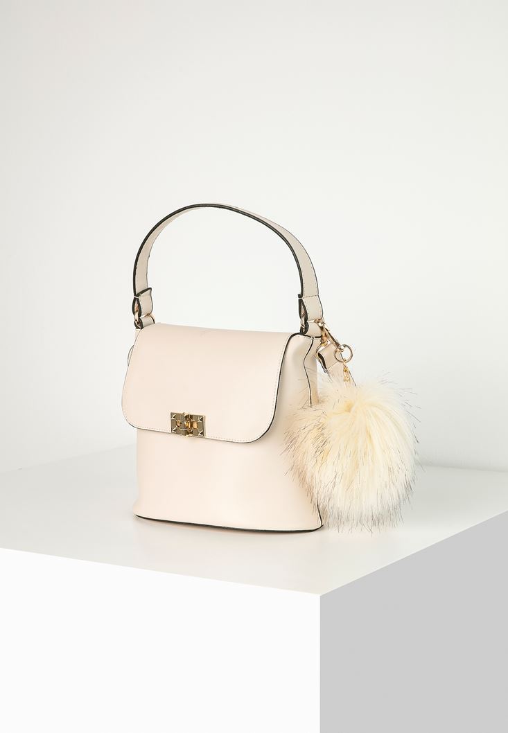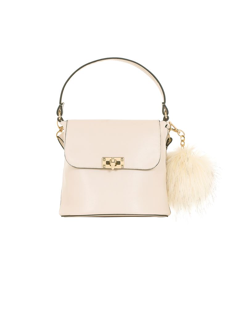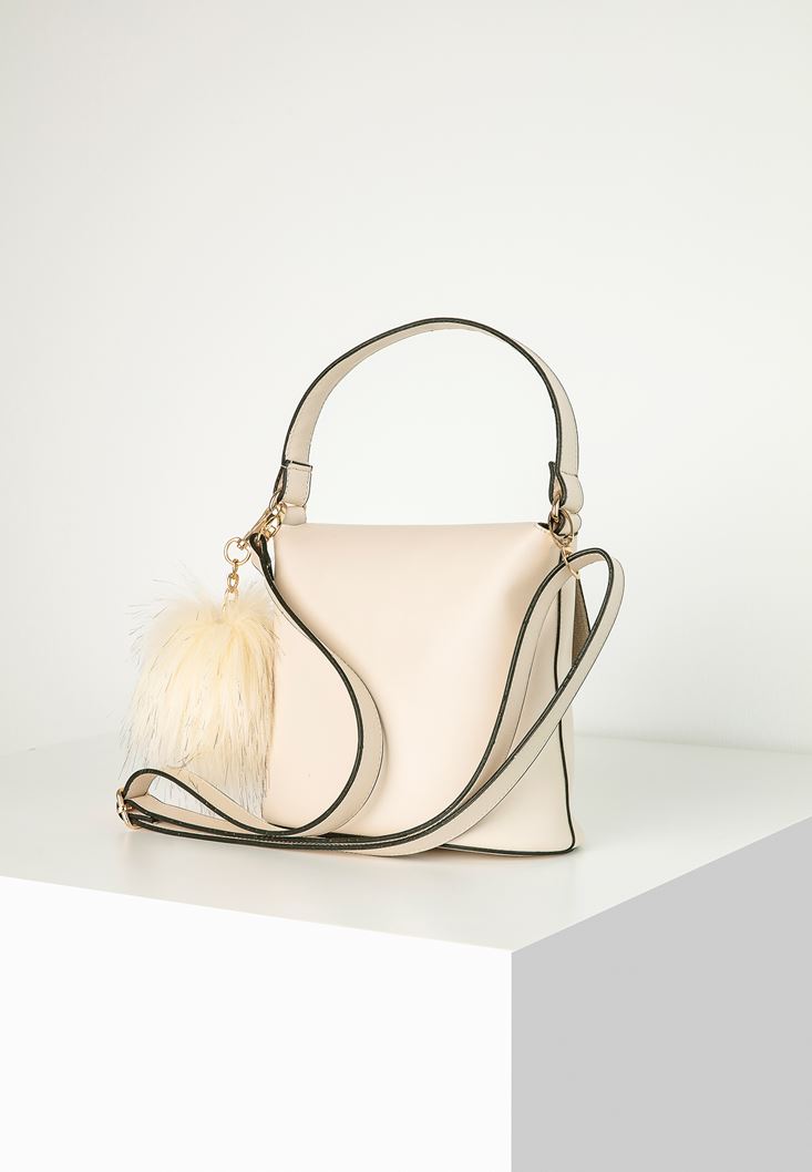 • Bayan Krem Ponpon Detaylı Kol Çantası