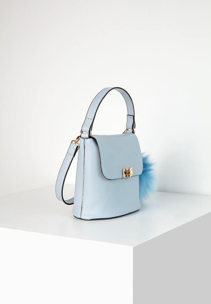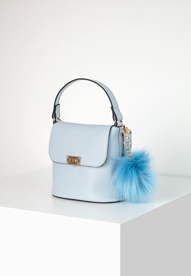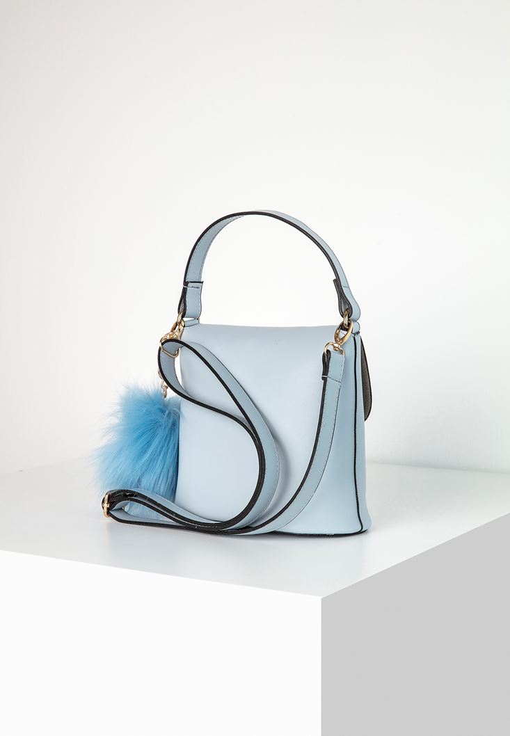 Mavi Ponpon Detaylı Kol Çantası