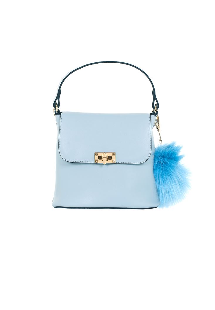• Bayan Mavi Ponpon Detaylı Kol Çantası