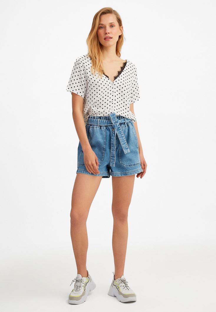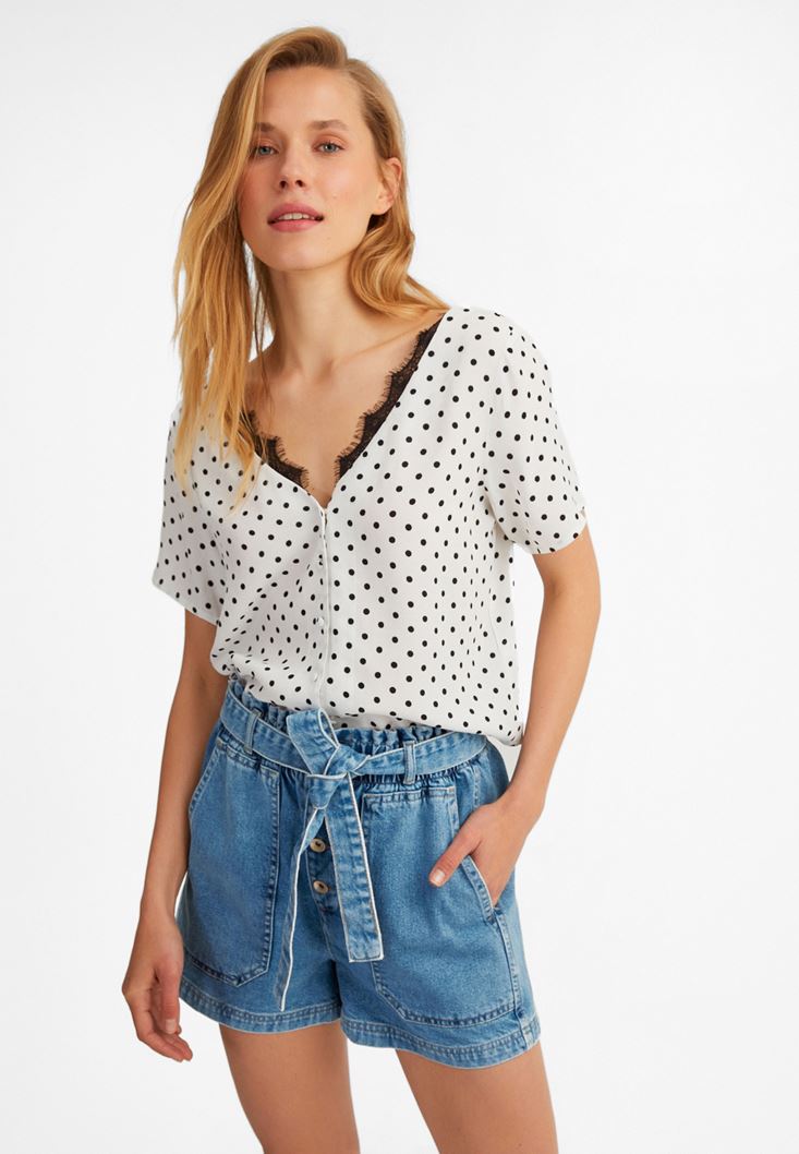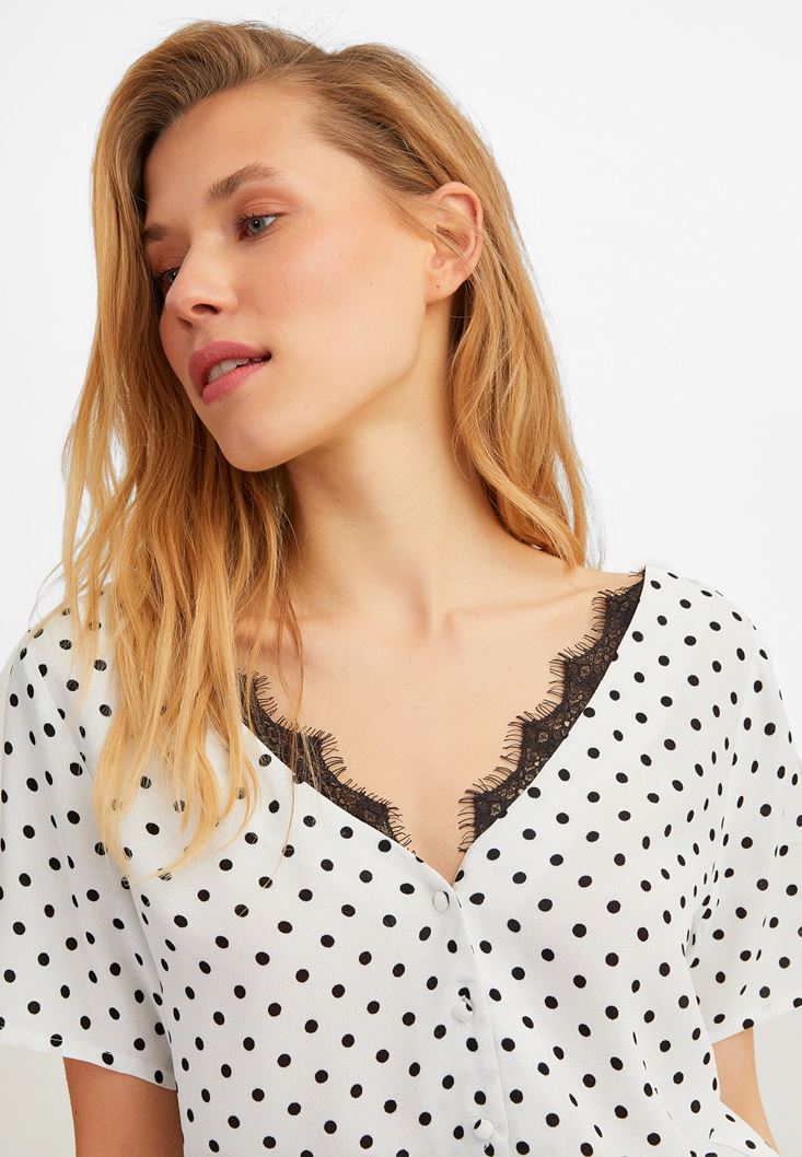 Oxxo Puantiye Desenli Düğmeli Bluz 209409616