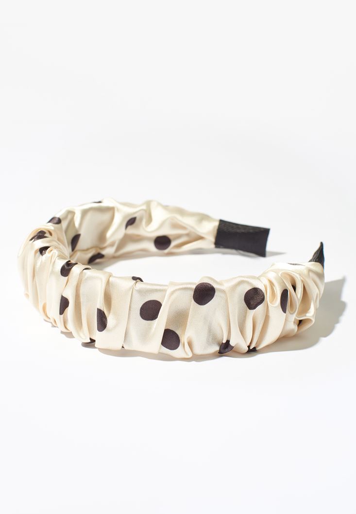 Beyaz Puantiyeli Saç Bandı
