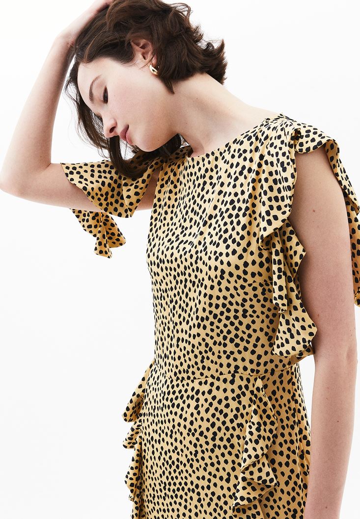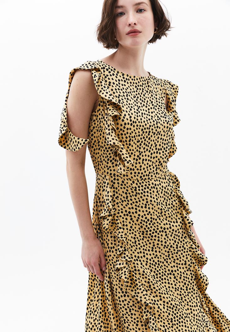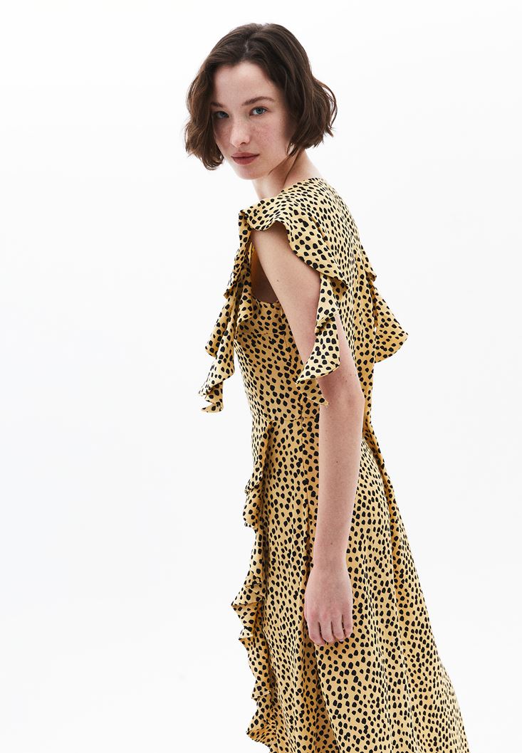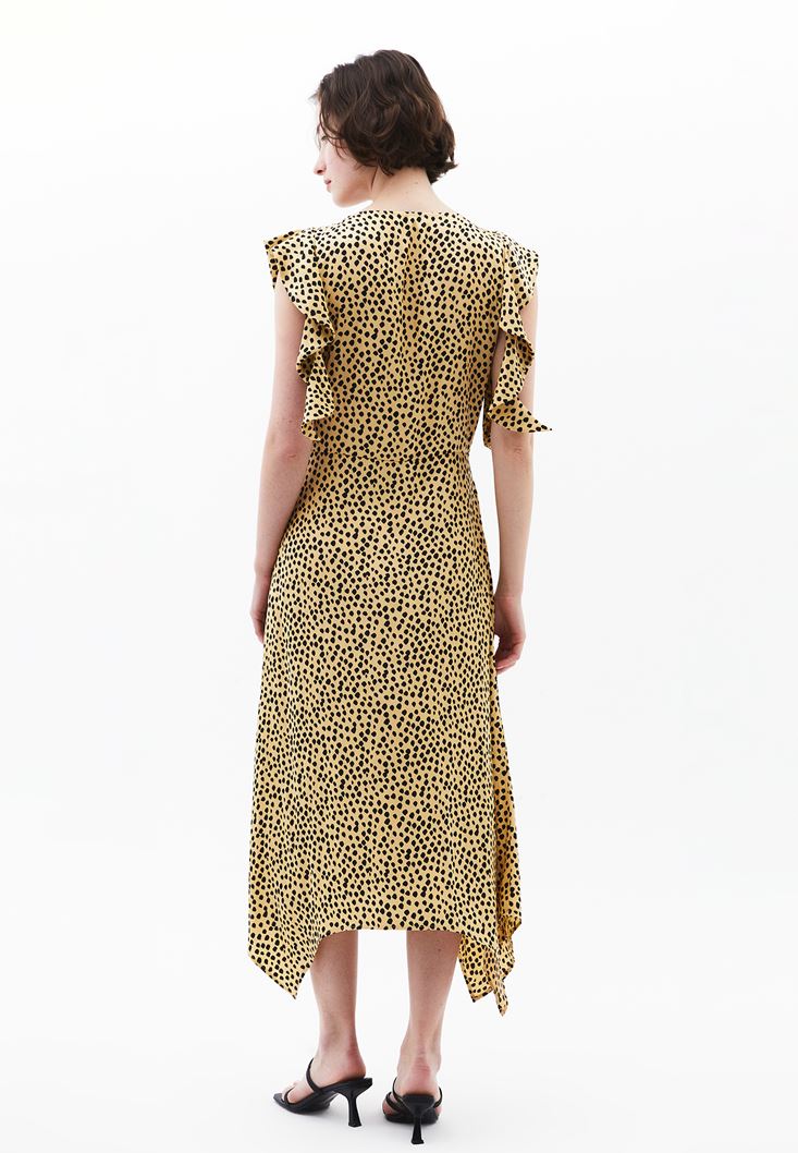 • Bayan Çok Renkli Puantiyeli Uzun Elbise