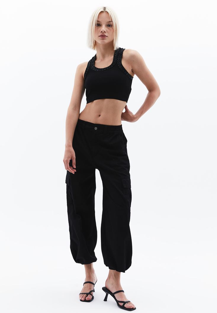 • Bayan Siyah Pul Detaylı Crop Atlet