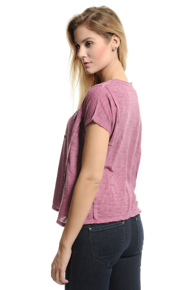 Pembe Pul İşlemeli Kısa Kollu Tişört