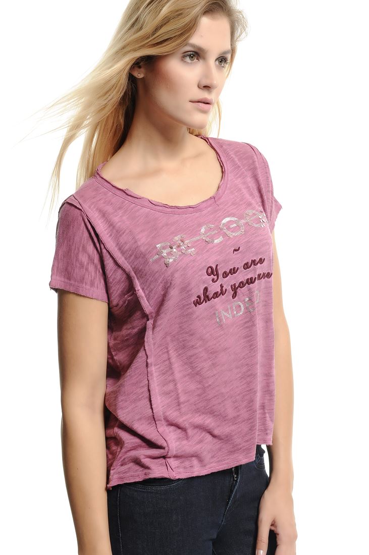 • Bayan Pembe Pul İşlemeli Kısa Kollu Tişört