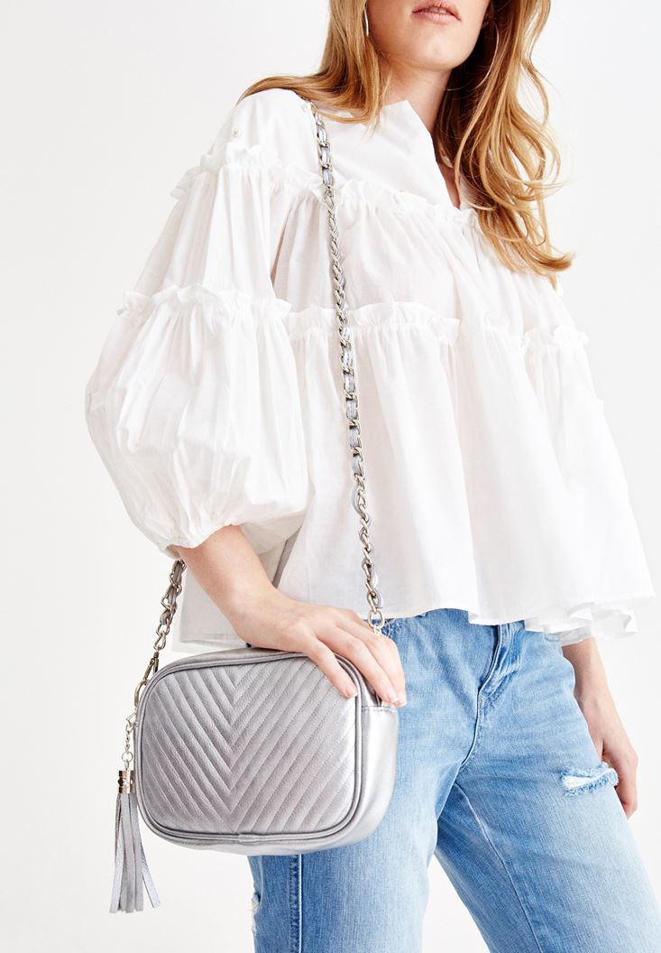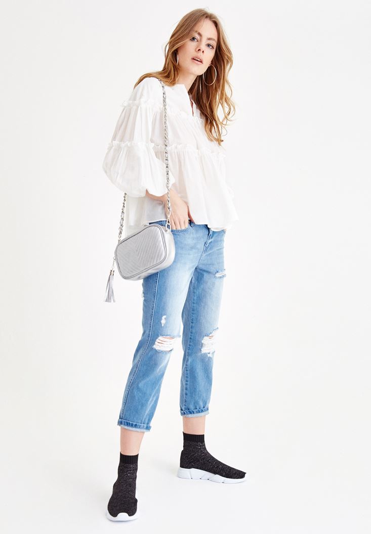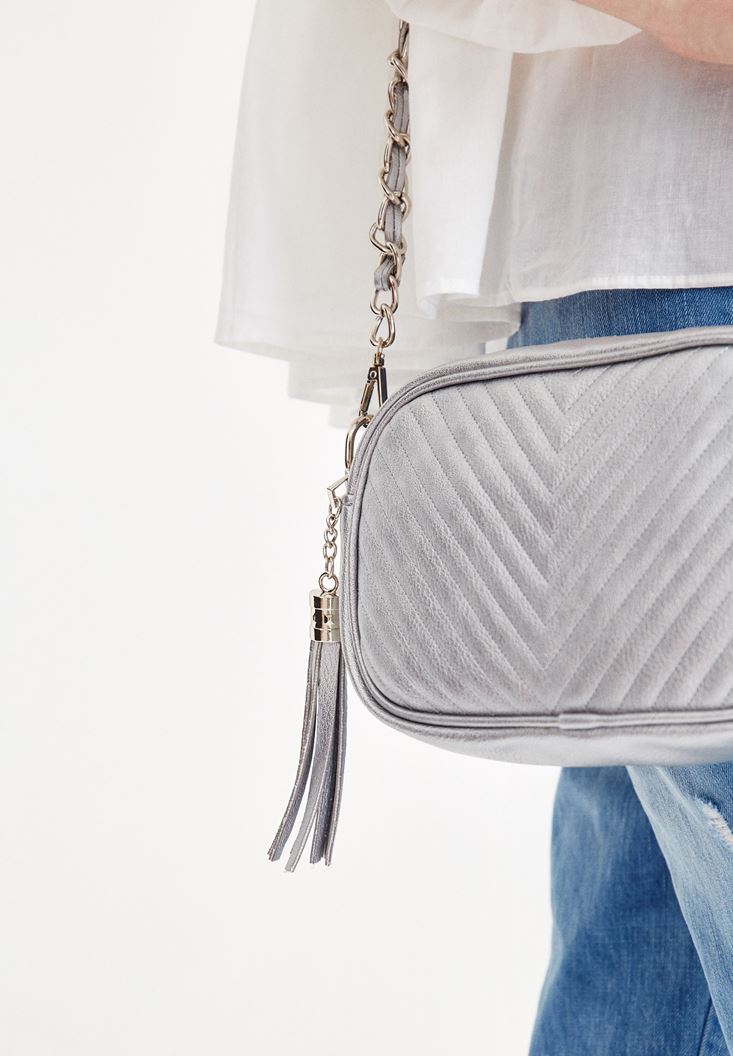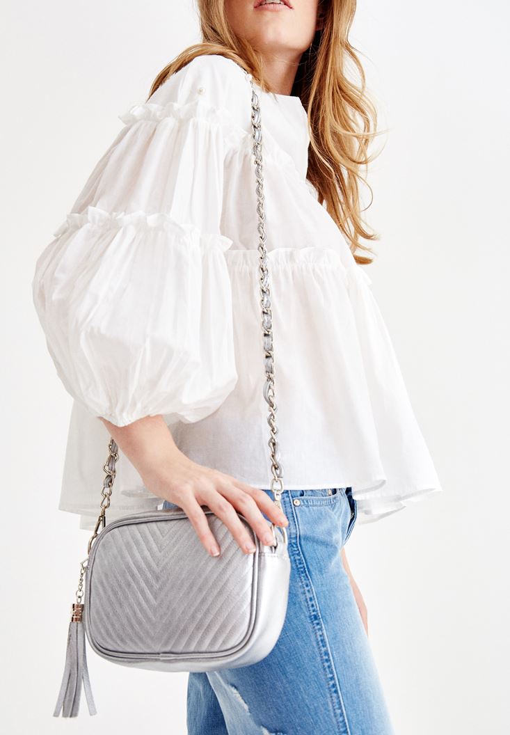 • Bayan Gümüş Püskül Detaylı Askılı Çanta