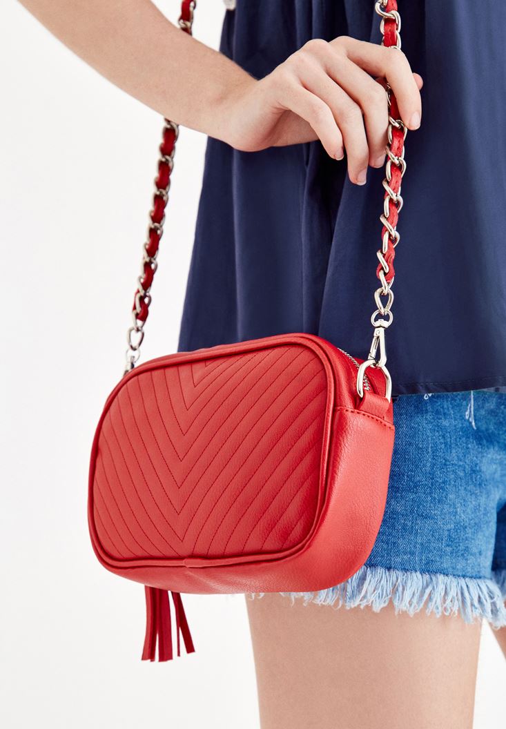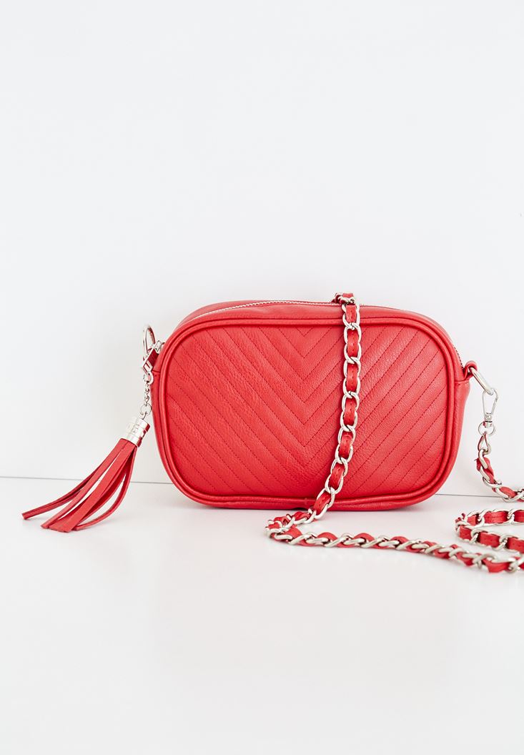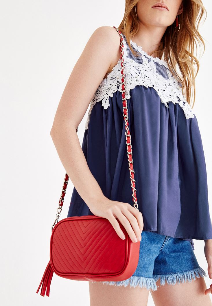 Kırmızı Püskül Detaylı Askılı Çanta