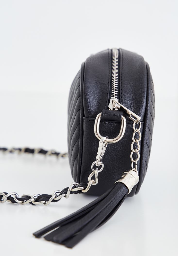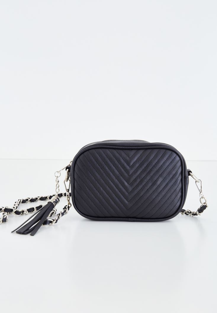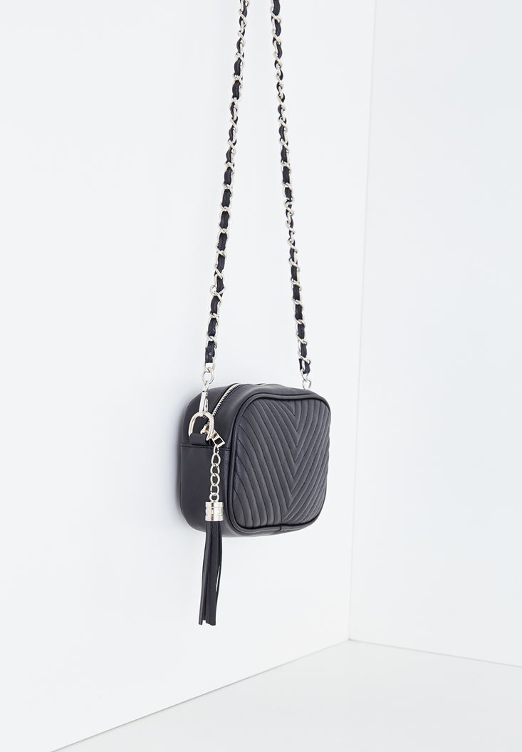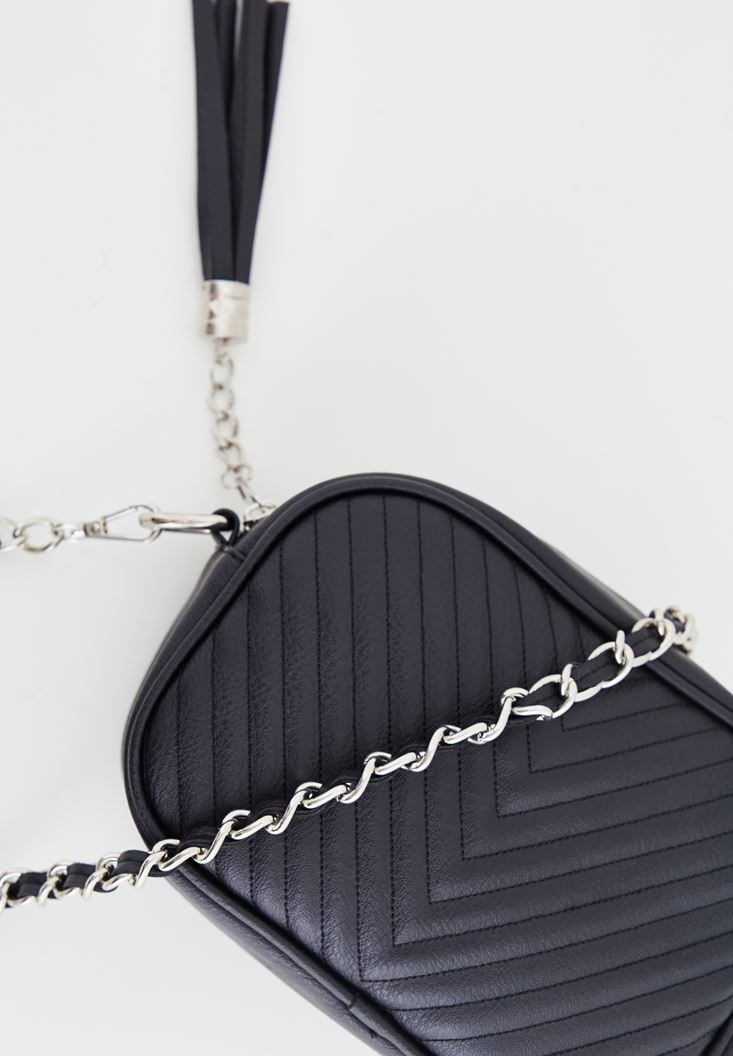 Siyah Püskül Detaylı Askılı Çanta