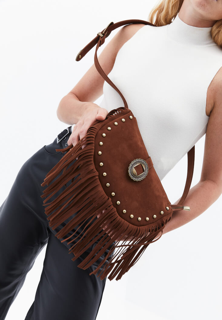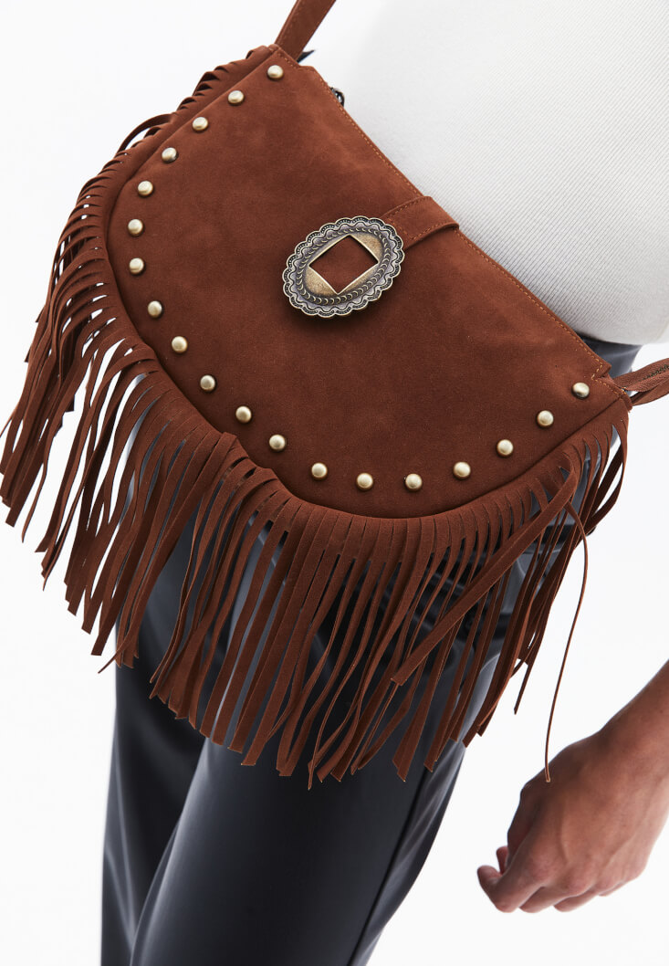 Kahverengi Püskül Detaylı Çanta