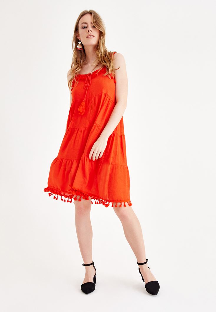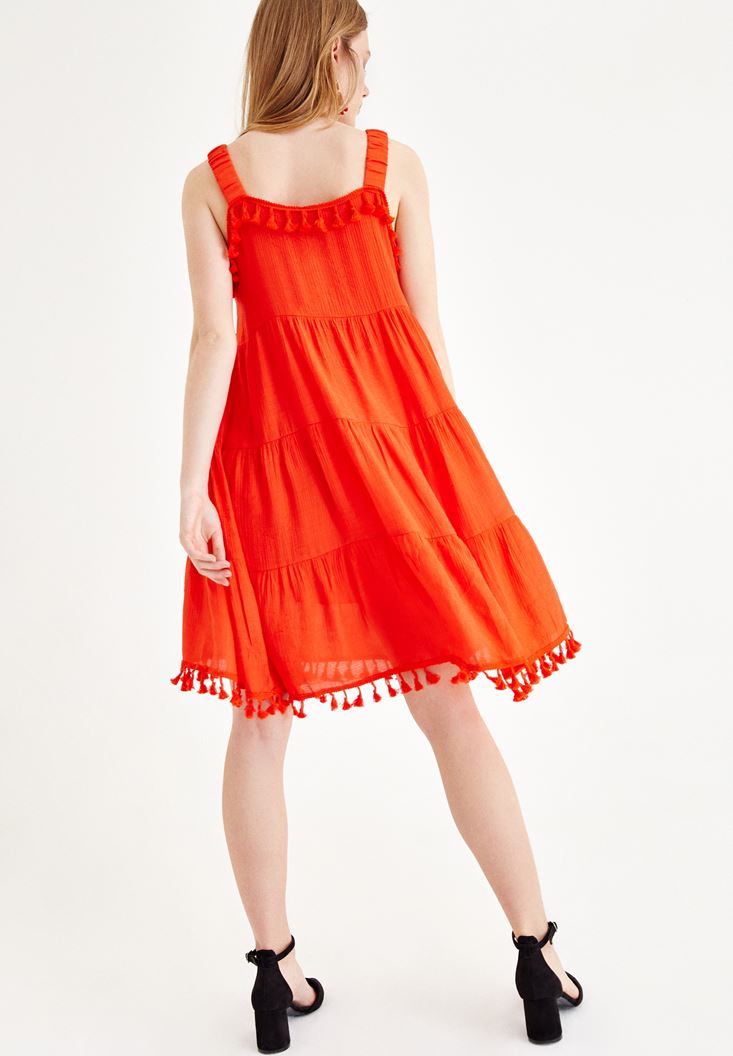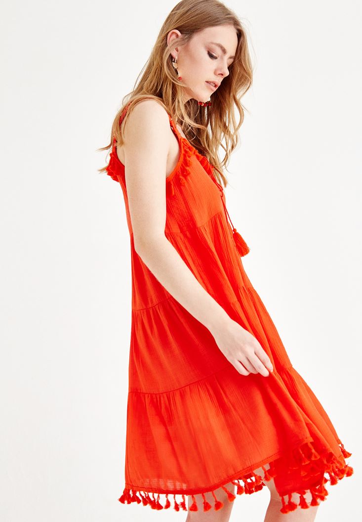 • Bayan Kırmızı Püskül Detaylı Elbise